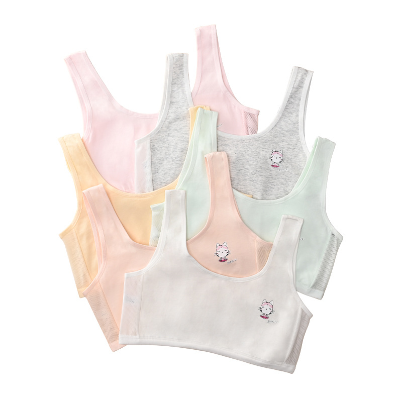 女童背心发育期内衣女学生高中少女棉质小学生双层夹棉防走光内衣