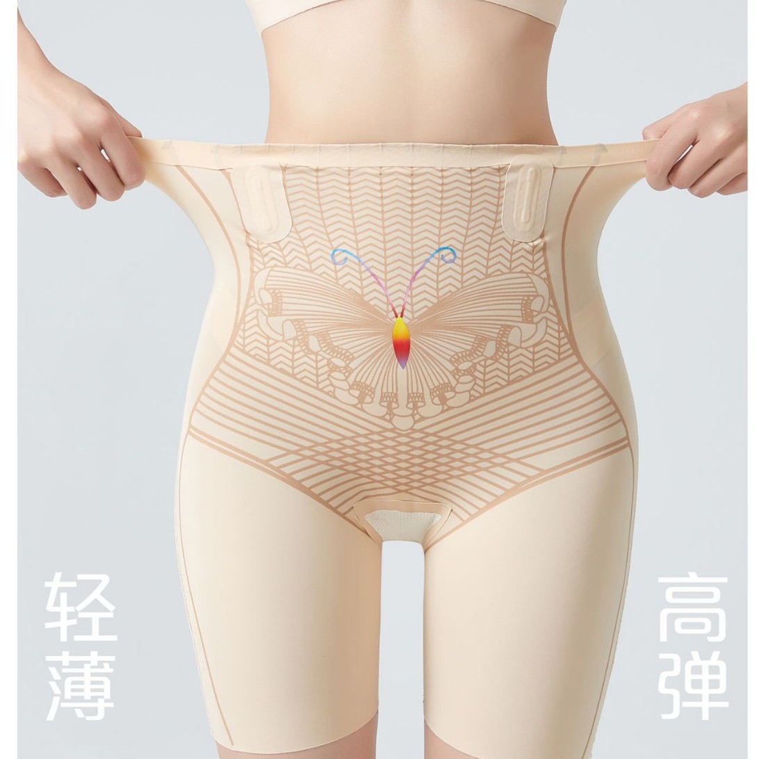 夏锦纶薄款收腹提臀裤液态蝴蝶高腰悬浮裤女产后打底塑形安全内裤