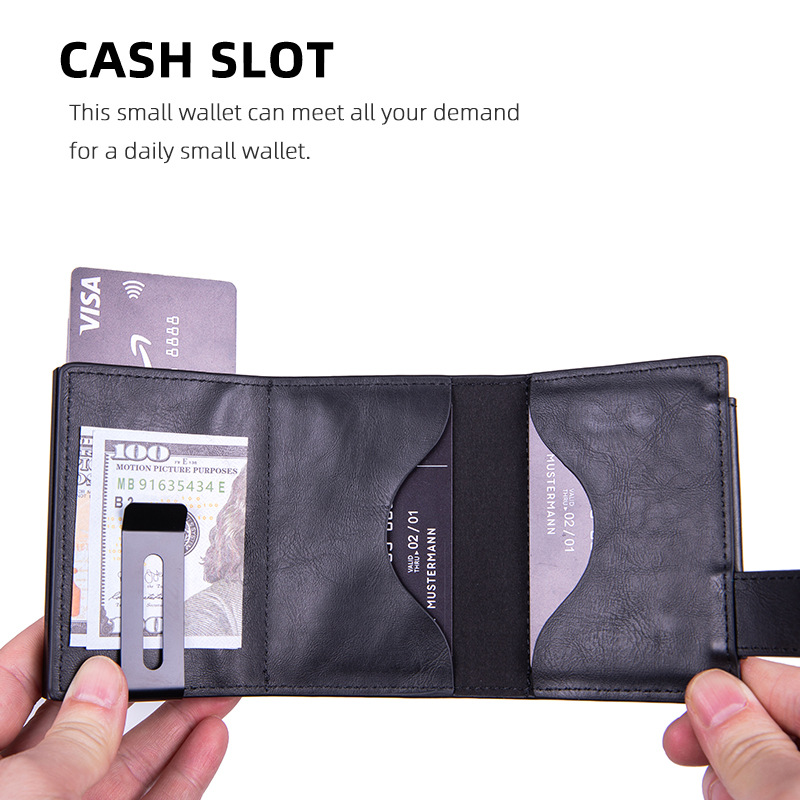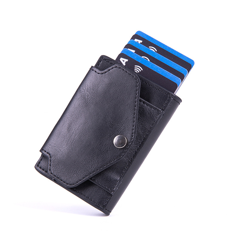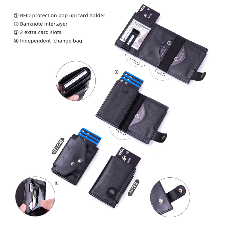 跨境热款信用卡套卡包PU皮质男士防盗刷自动弹出铝合金零钱包卡包