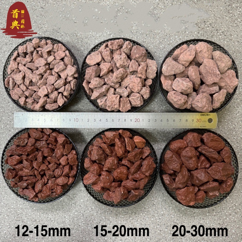 厂家直销红色砾石红色水磨石红色尖角石子红石头绿植造景铺面石子