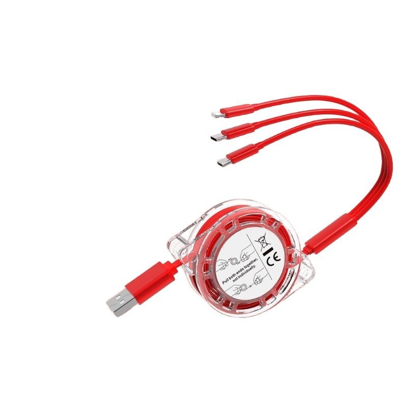 伸缩三合一数据线快充三头一拖三手机快充充电线活动礼品广告制定