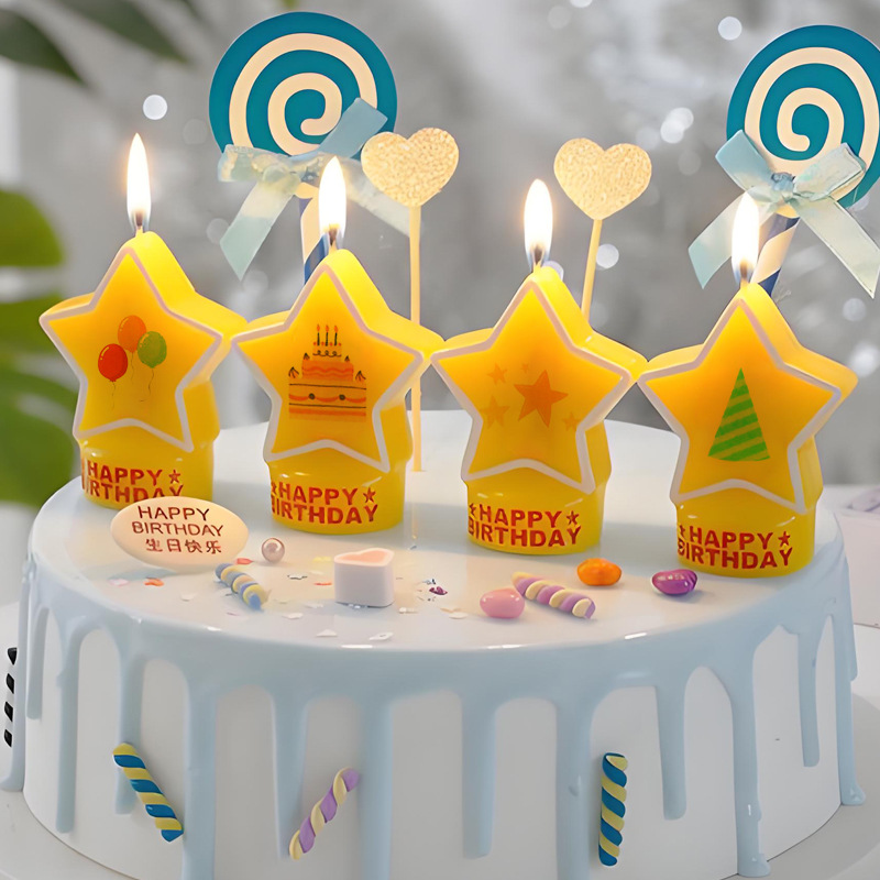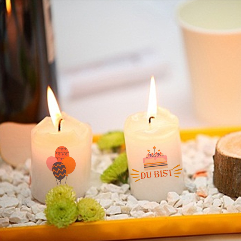 工厂直批儿童卡通主题条杆蜡烛水贴纸DIY可测燃烧定制铜版纸