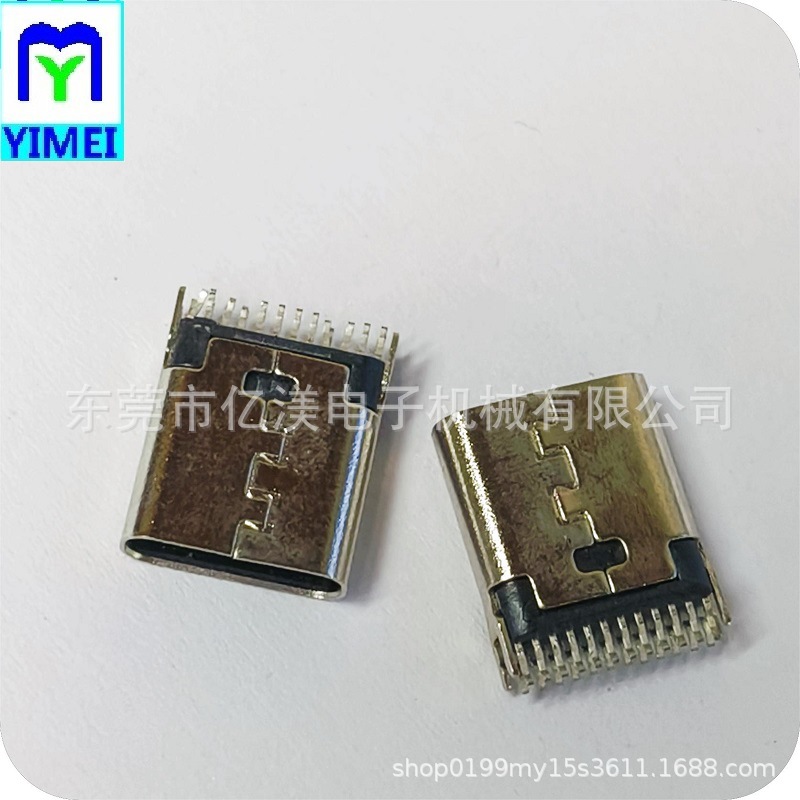 TYPE-C24P母座AF24pin夹板式H10.5夹板CH0.8充电接口连接器