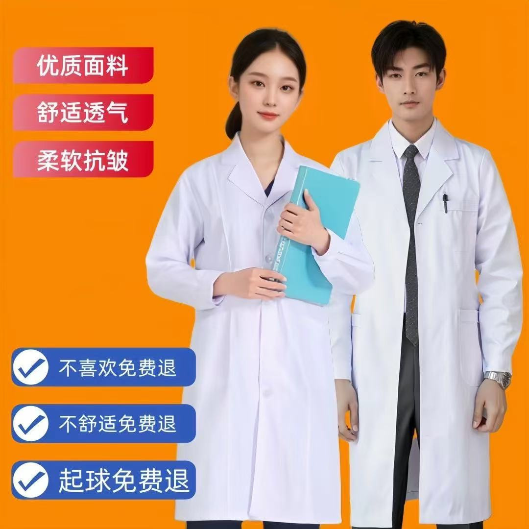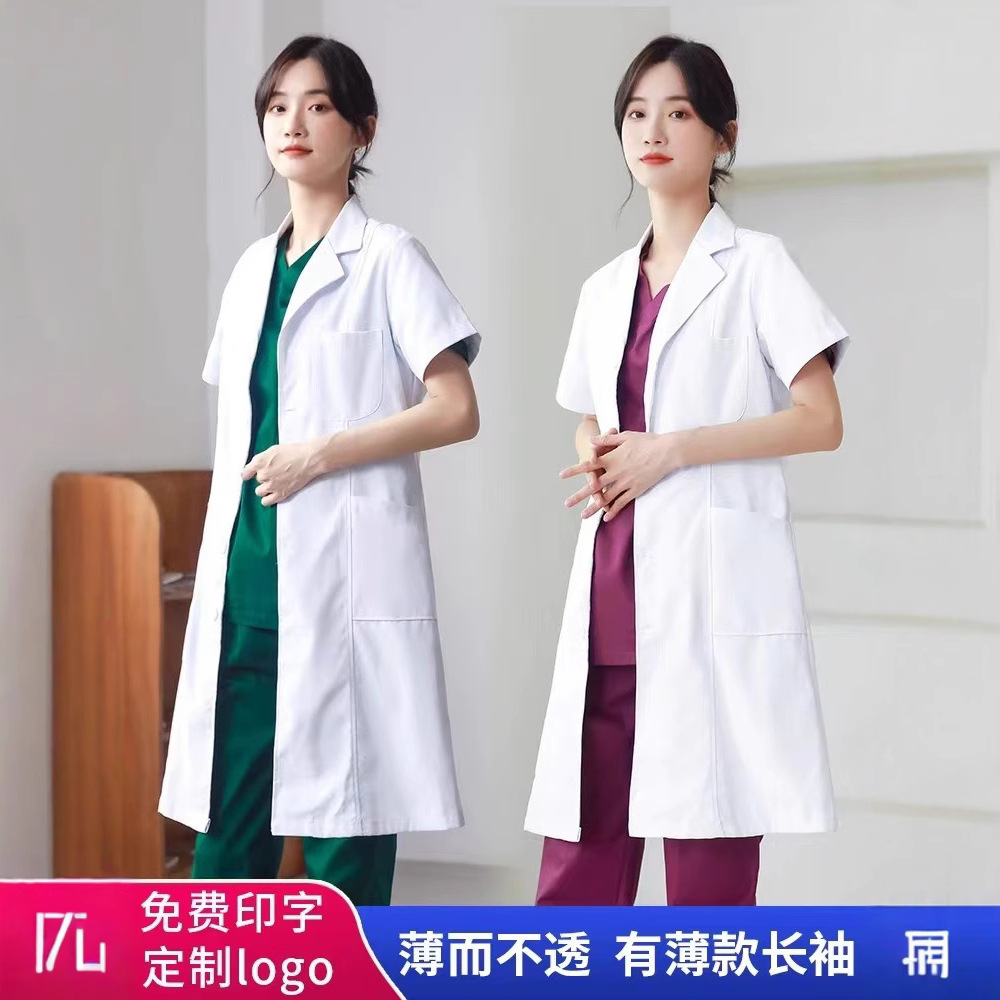 白大褂长短袖男女医生服白大衣学生实验服药店美容院冬夏工作服