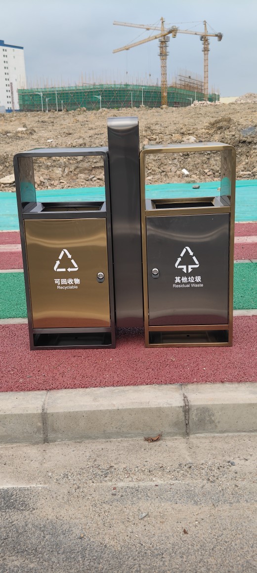 户外物业小区城市街道不锈钢镀锌板镀金锌板分类垃圾桶热销桶