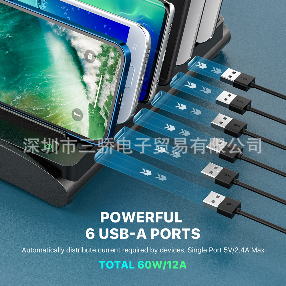 十位九位安卓五合一充电器站适用苹果安卓三星快充闪充全球通用