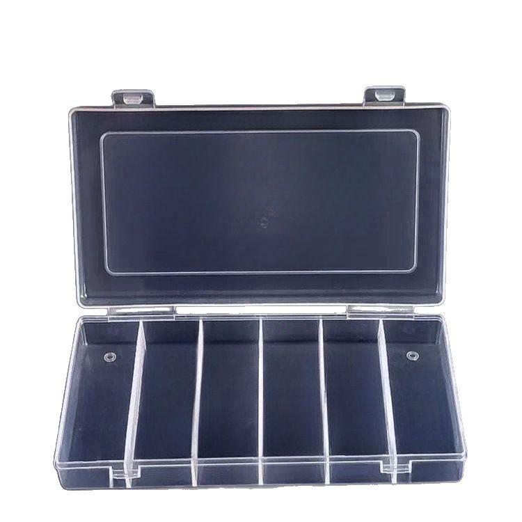 厂家直供 6 格透明塑料收纳盒 双扣盖美甲工具盒渔具小配件储物盒
