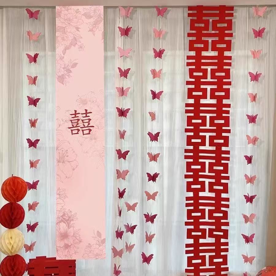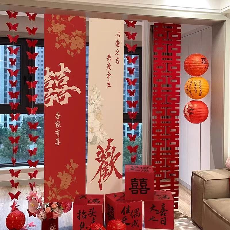 婚房装饰布置客厅喜字结婚条幅挂布男方新房女方卧室背景墙套装