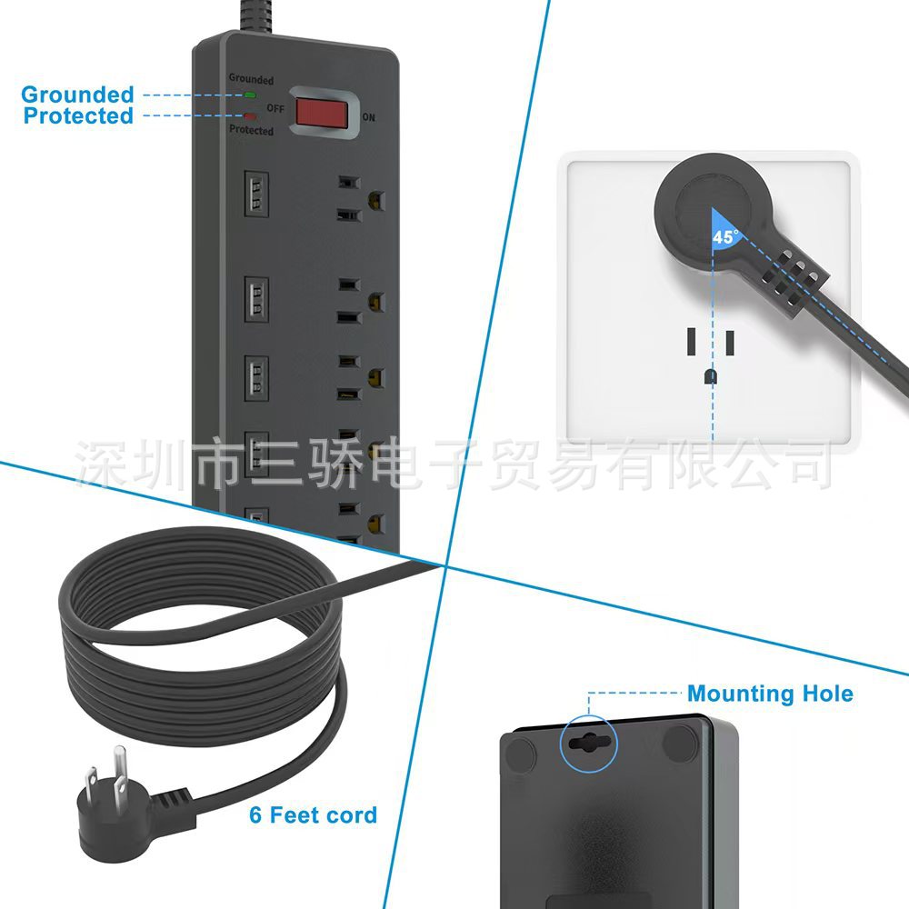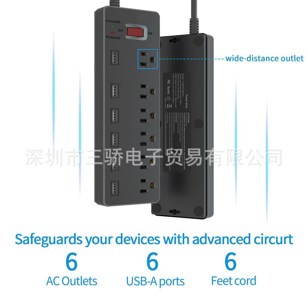 跨境专供厂家直销美标排插6个AC插座+6个USB接口ETL认证6USB