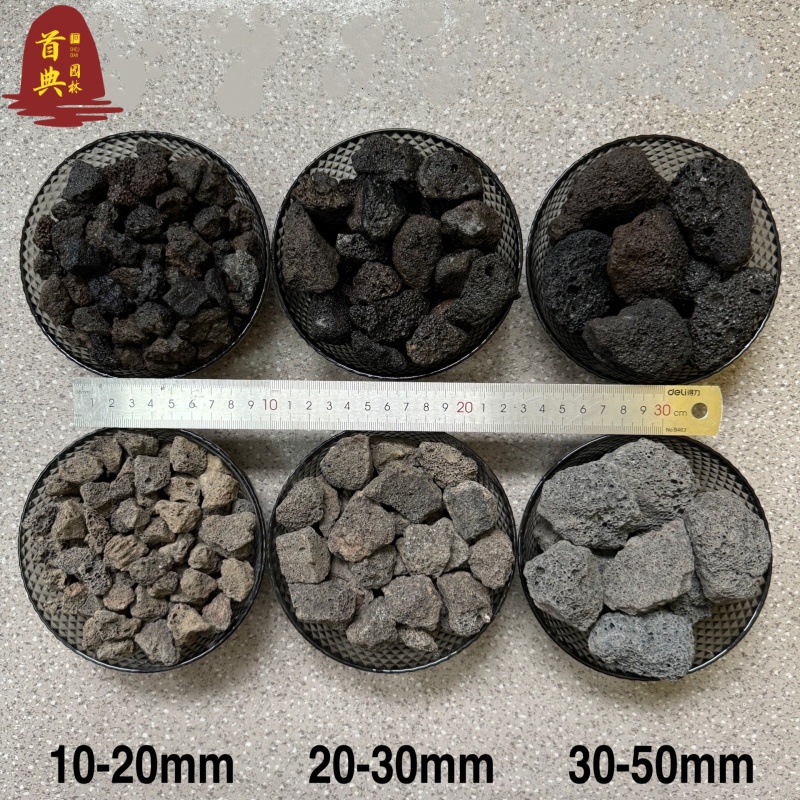 黑色火山岩颗粒天然火山石原石过滤花盆火山岩铺面石鱼缸水池过滤