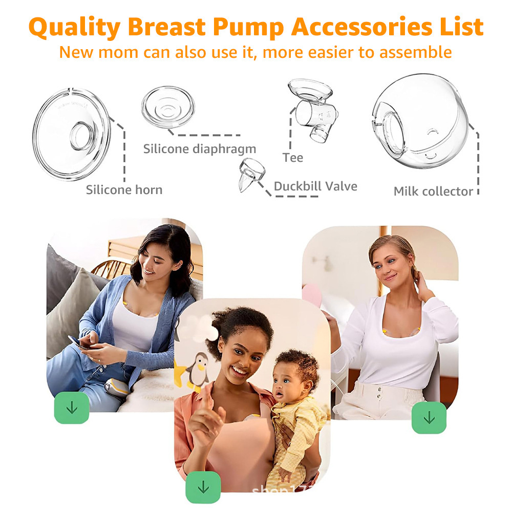 穿戴式电动吸奶器配件硅胶喇叭硅胶隔膜鸭嘴阀三通防尘盖PP奶瓶