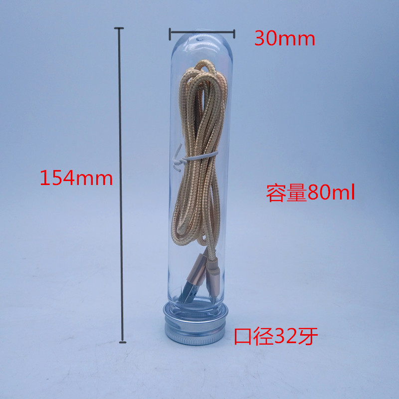 80ml倒立试管瓶数据线瓶耳机瓶笔芯瓶圆柱形PET材质瓶