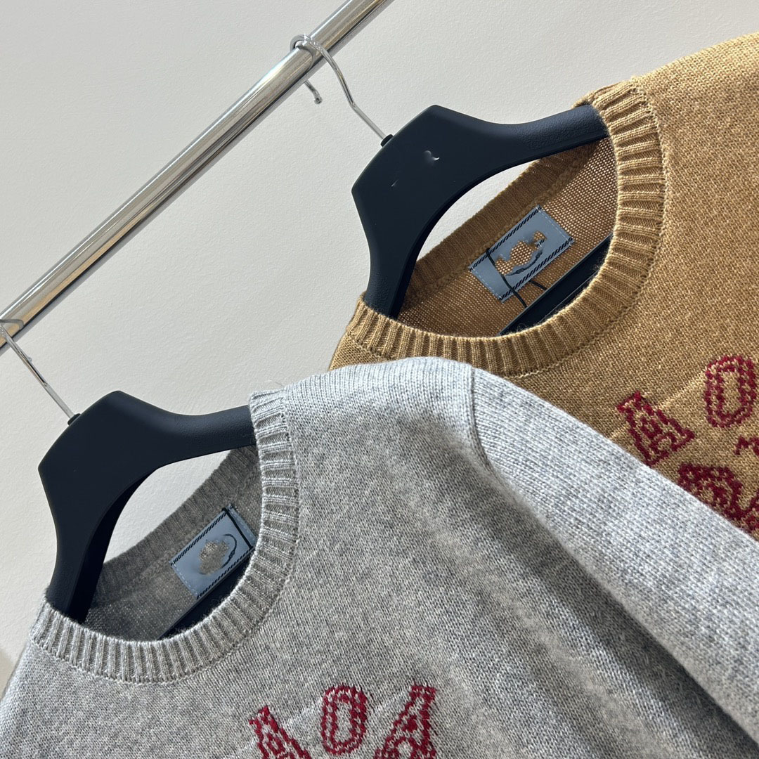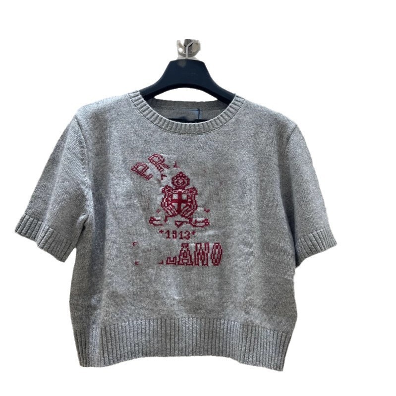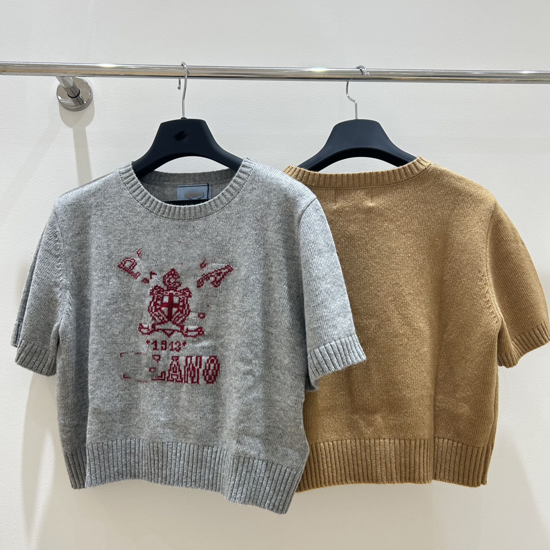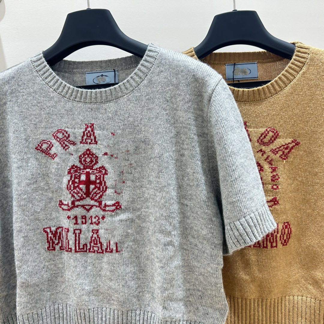 南油高品质P家25新款经典字母logo羊绒提花休闲百搭短袖针织毛衣