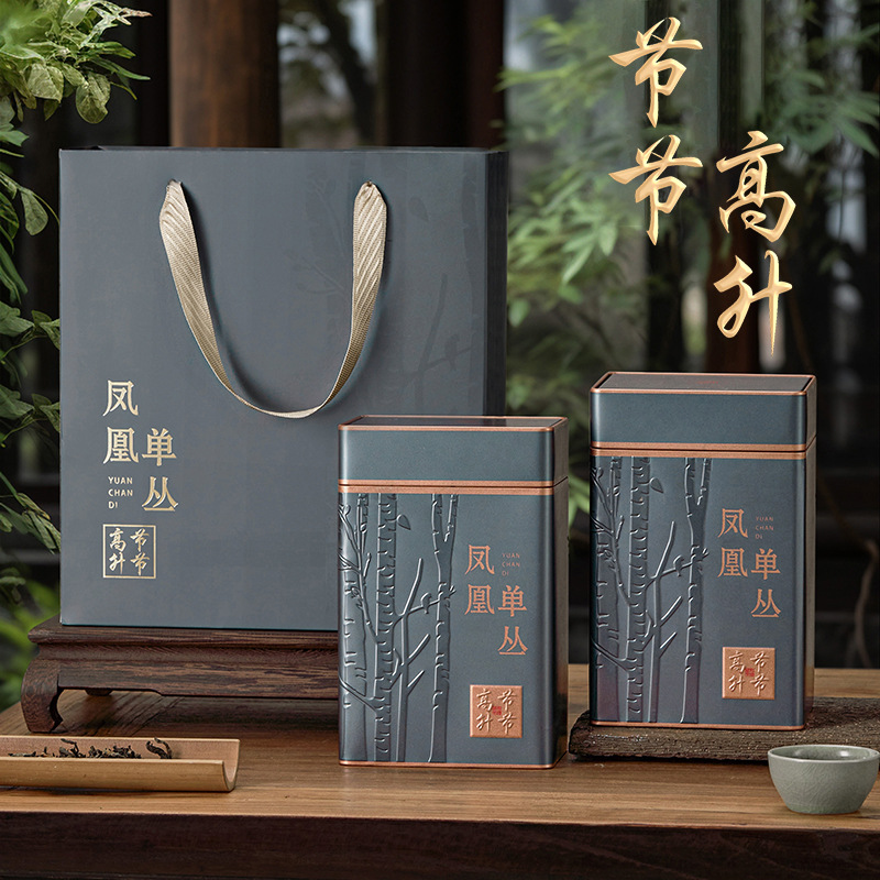 凤凰单丛茶叶罐一斤装鸭屎香密封空罐250g大红袍高盖磨砂铁罐批发
