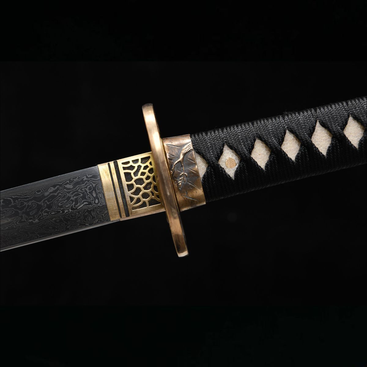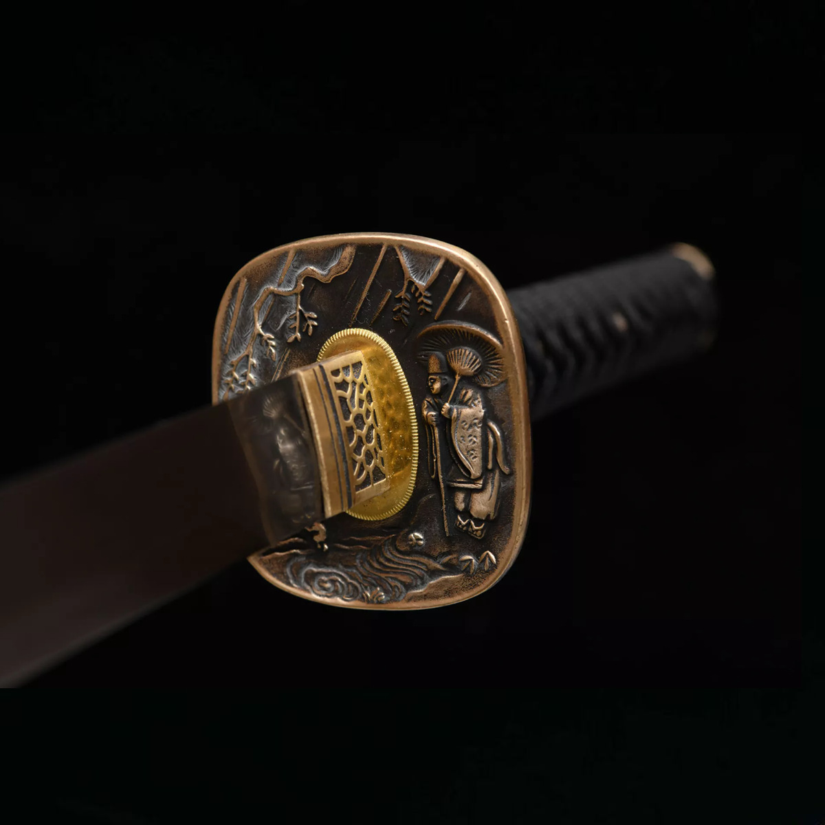 龙泉刀剑日式打刀长款纯铜装百炼花纹钢一体手工锻打冷兵器未开刃