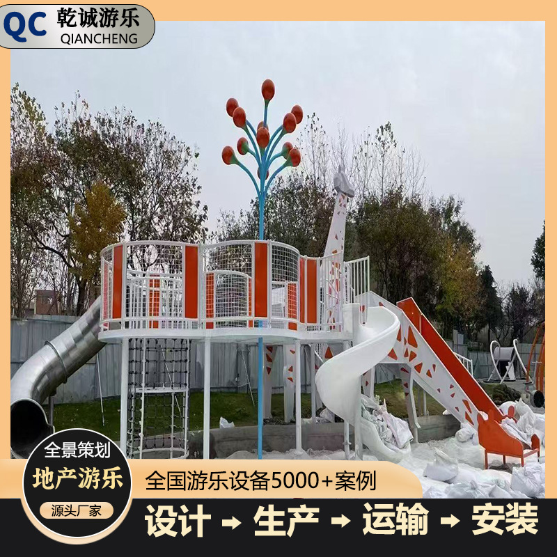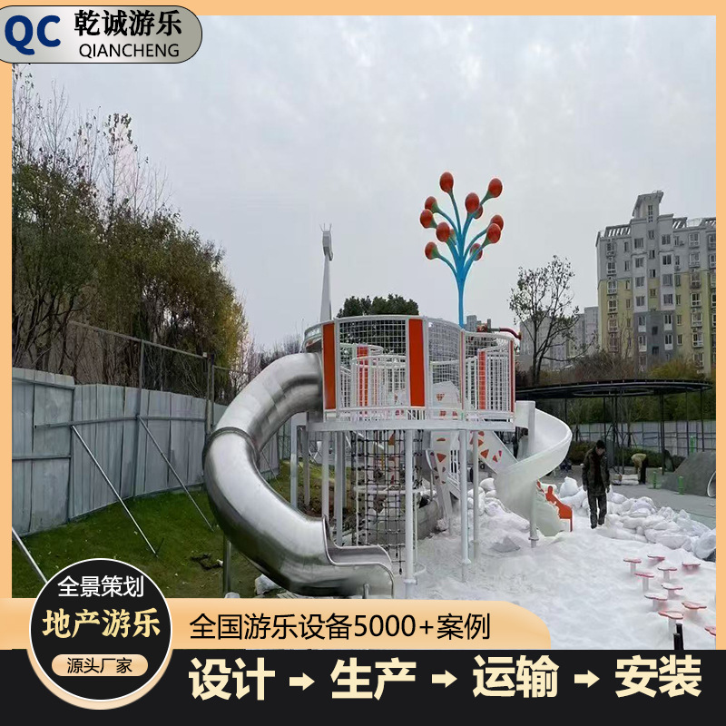 户外非标不锈钢滑梯组合 网红景区秋千设备 无动力游乐设备厂家