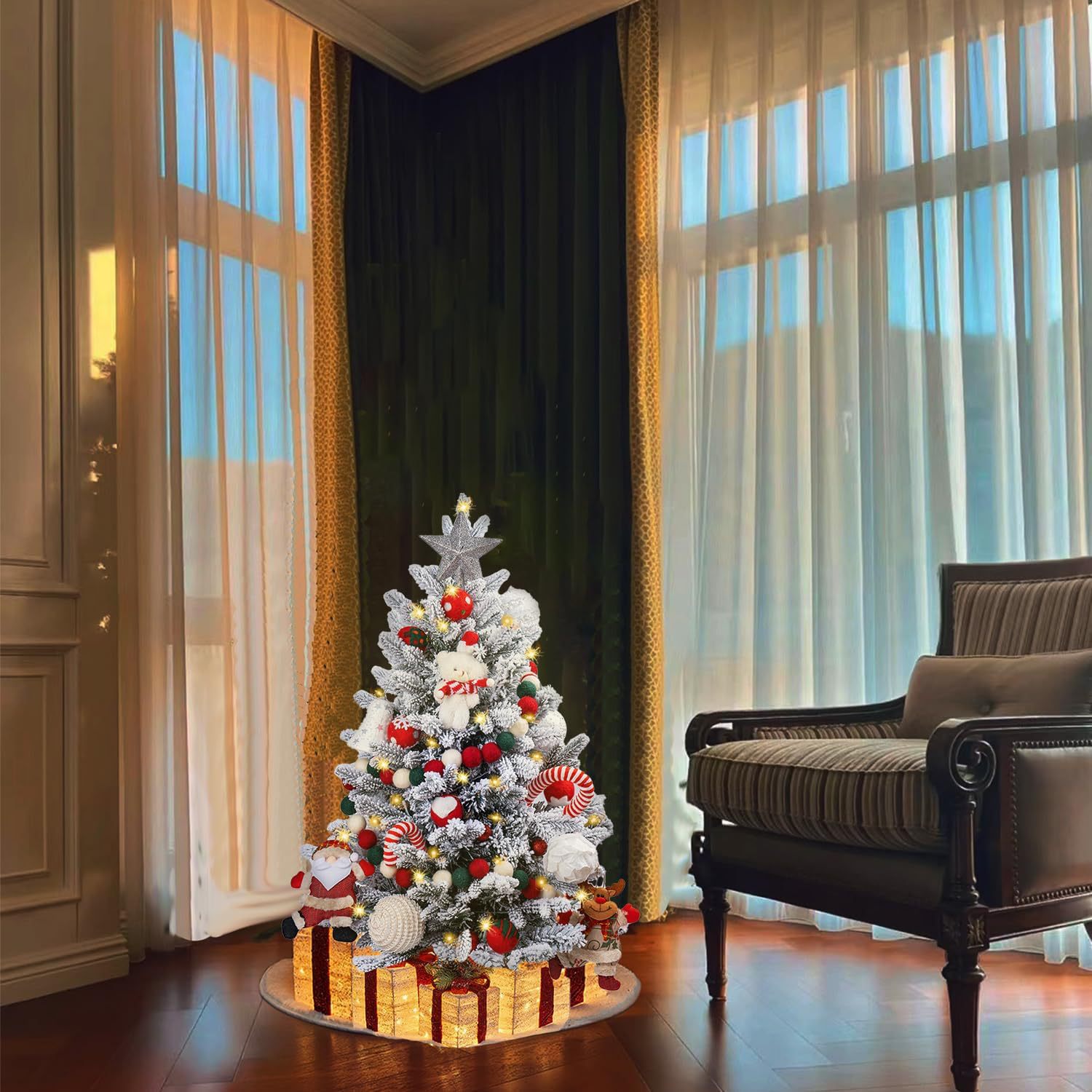 60CM 90CM圣诞麻包小树 植绒树带红果松果装饰圣诞桌面小树装饰