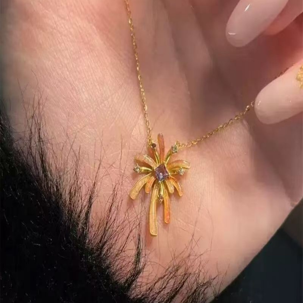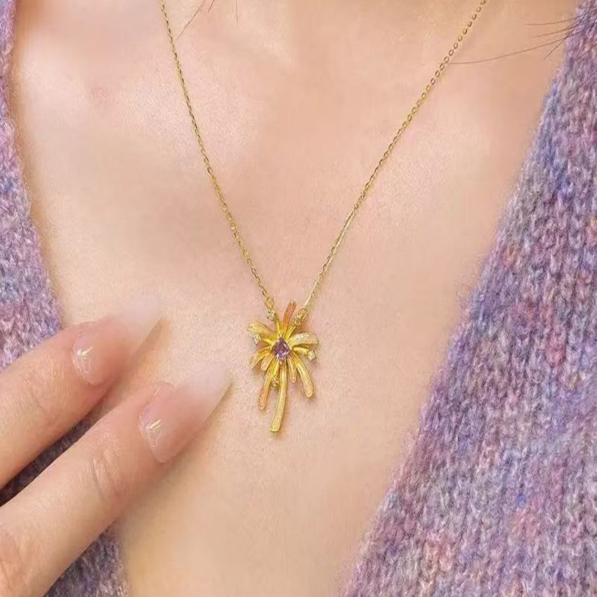 璀璨烟花吊坠项链新中式甜酷个性气质锁骨链百搭精致配饰