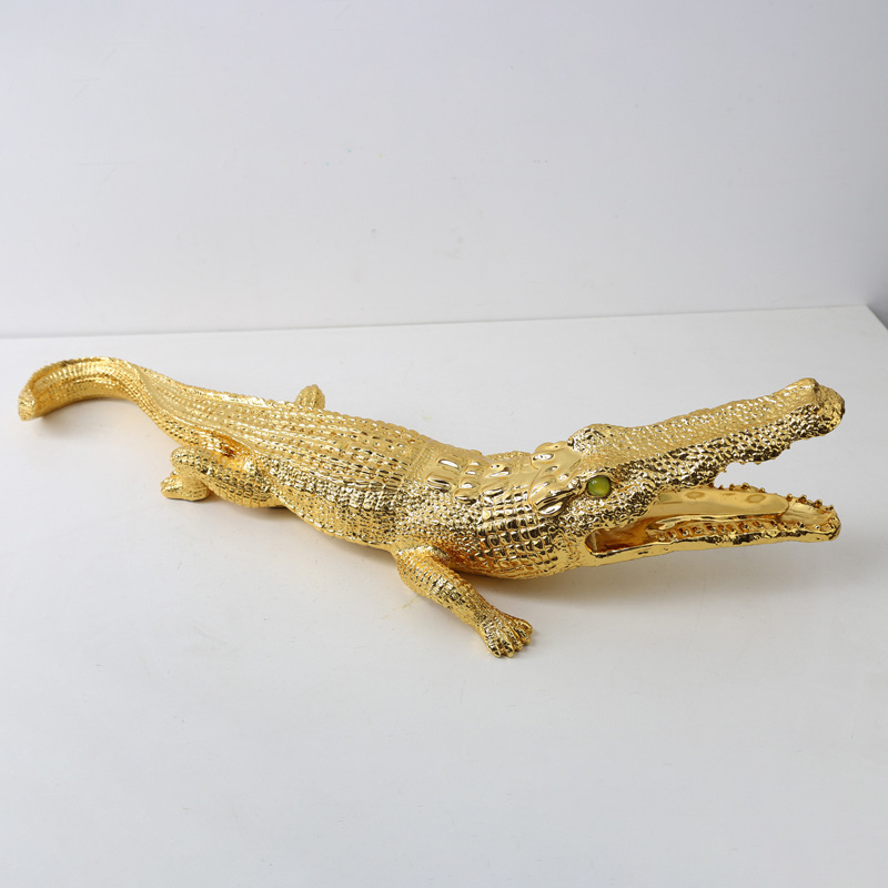 工厂跨境外贸电镀动物鳄鱼树脂工艺品会所酒店样板间装饰软装摆件