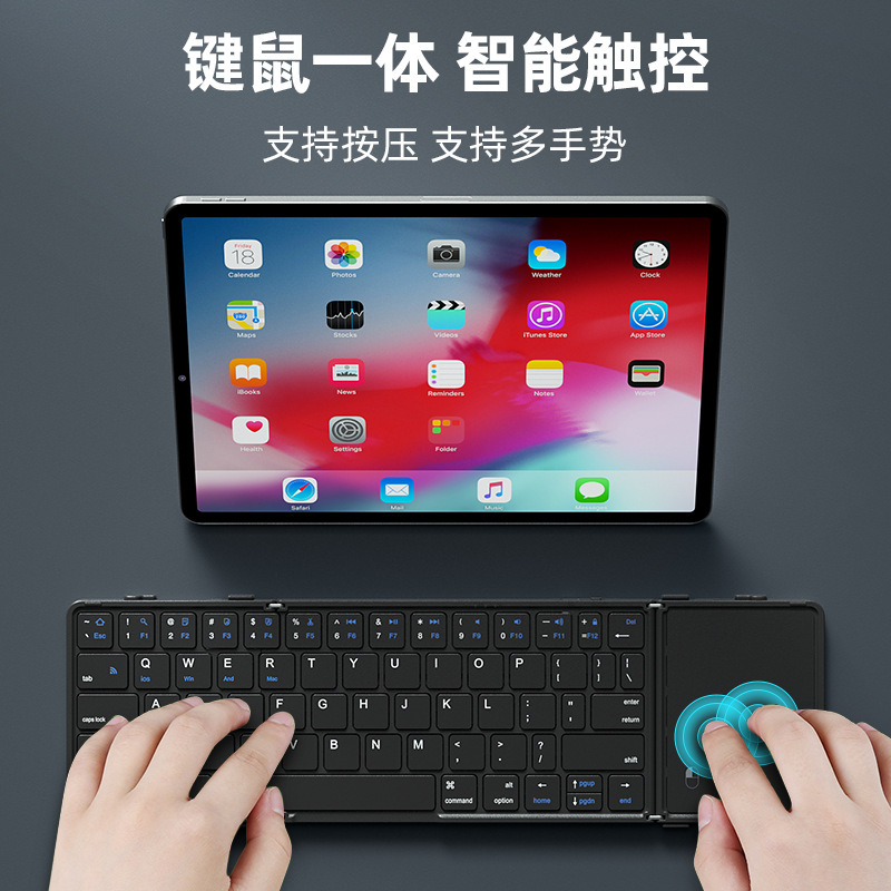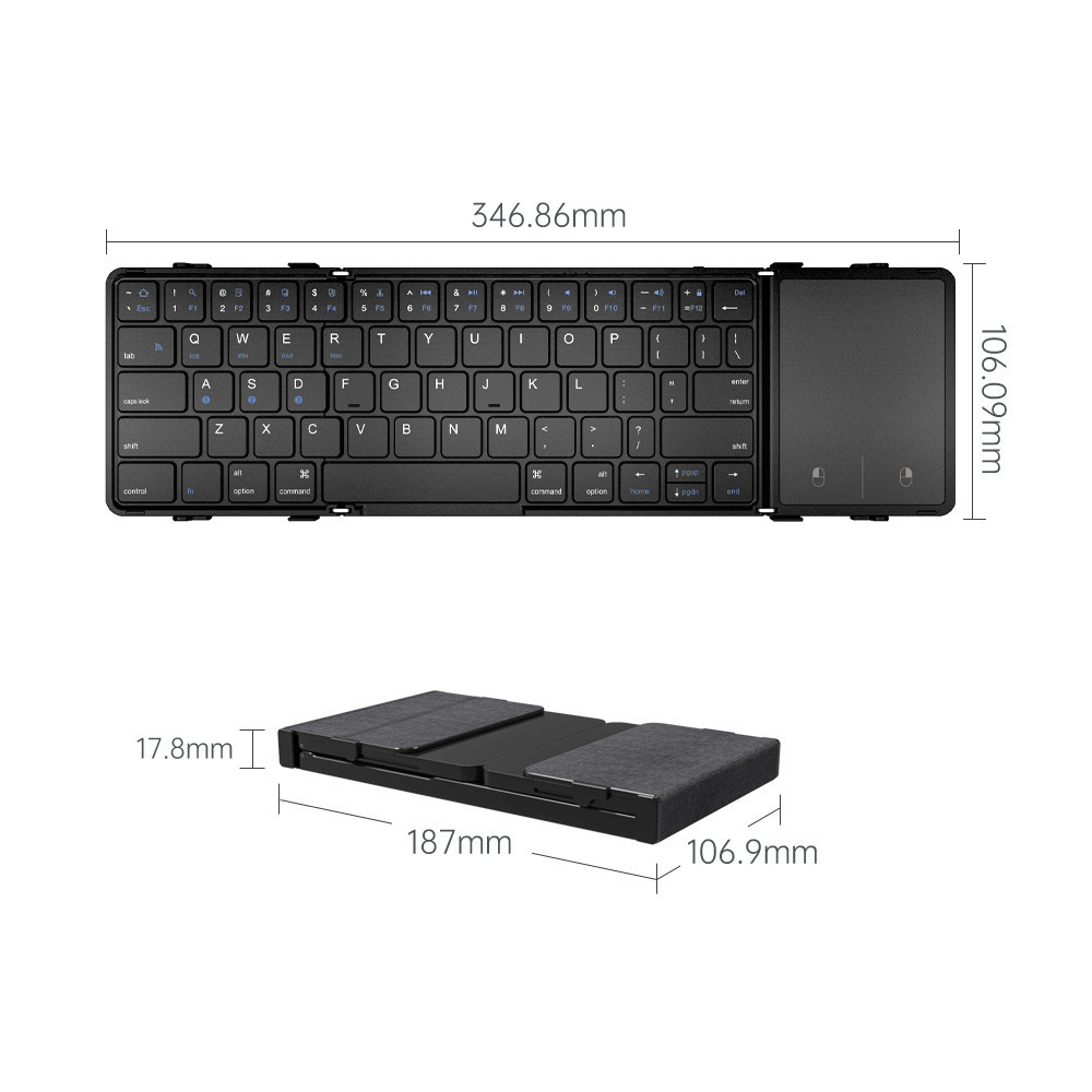 跨境格纹皮革三折叠键盘平板手机电脑多系统通用便携无线蓝牙键盘