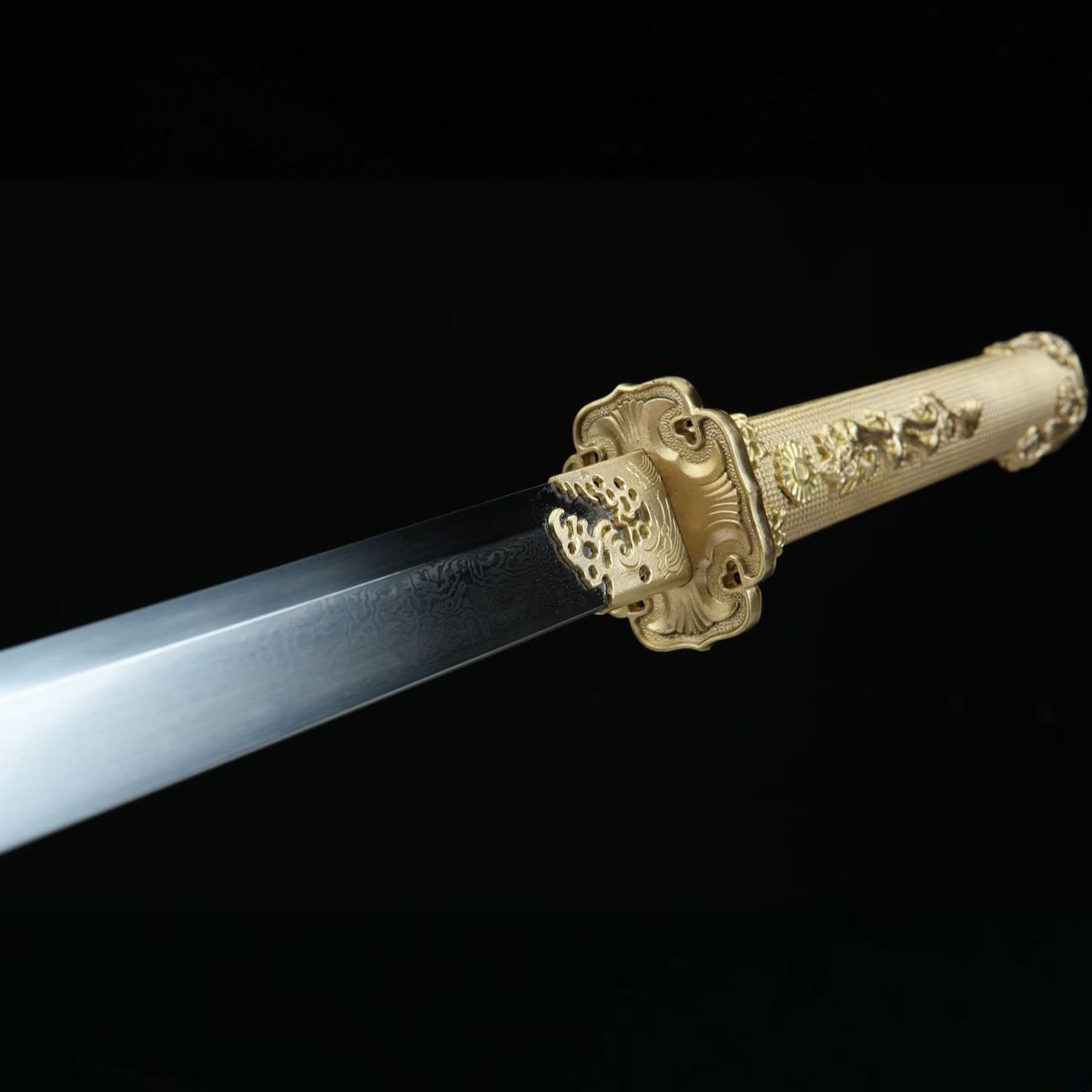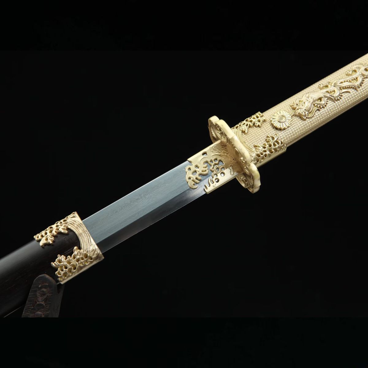 龙泉刀剑水龙唐横刀一体百炼花纹钢手工锻打黄铜精雕冷兵器未开刃