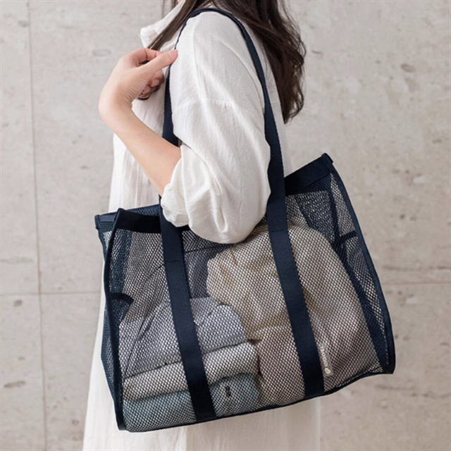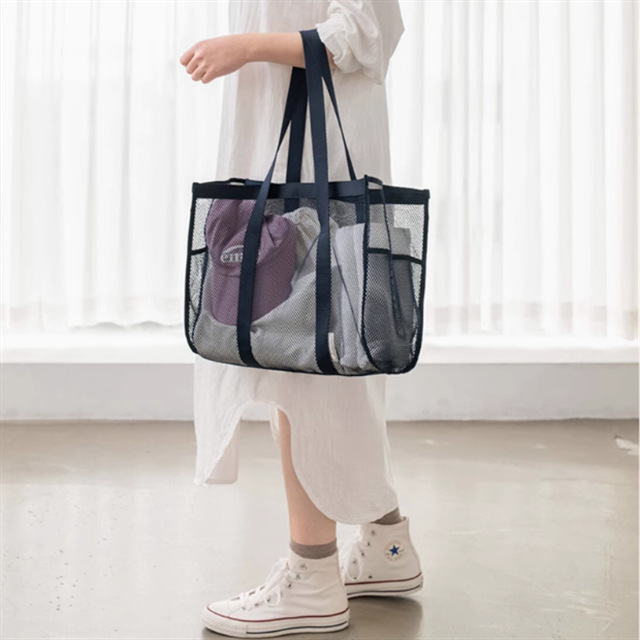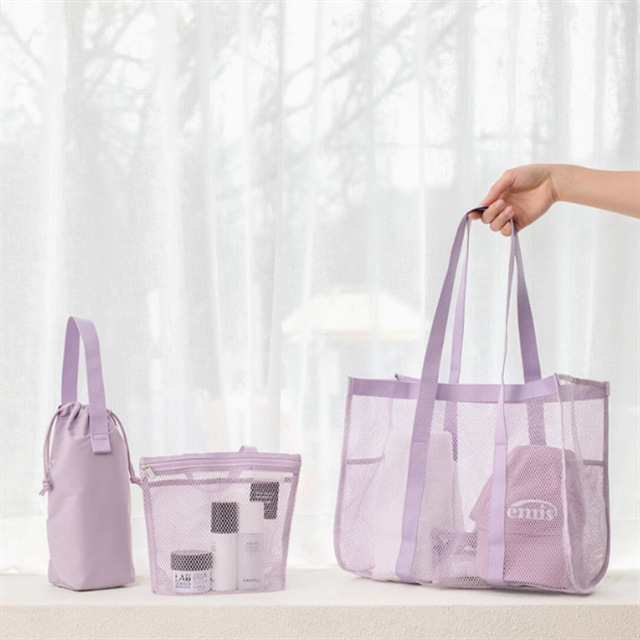 定制大容量网眼镂空单肩洗漱包 旅行休闲戏水沙滩游泳透气收纳袋