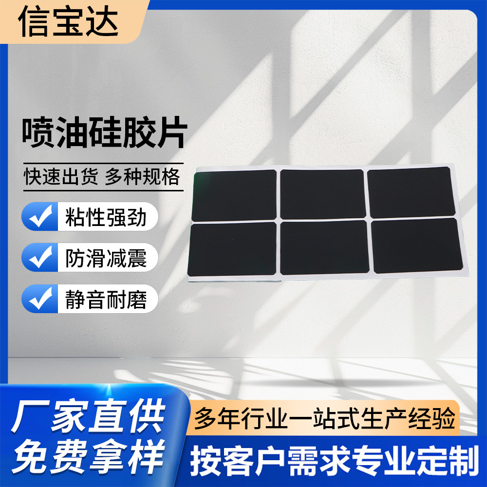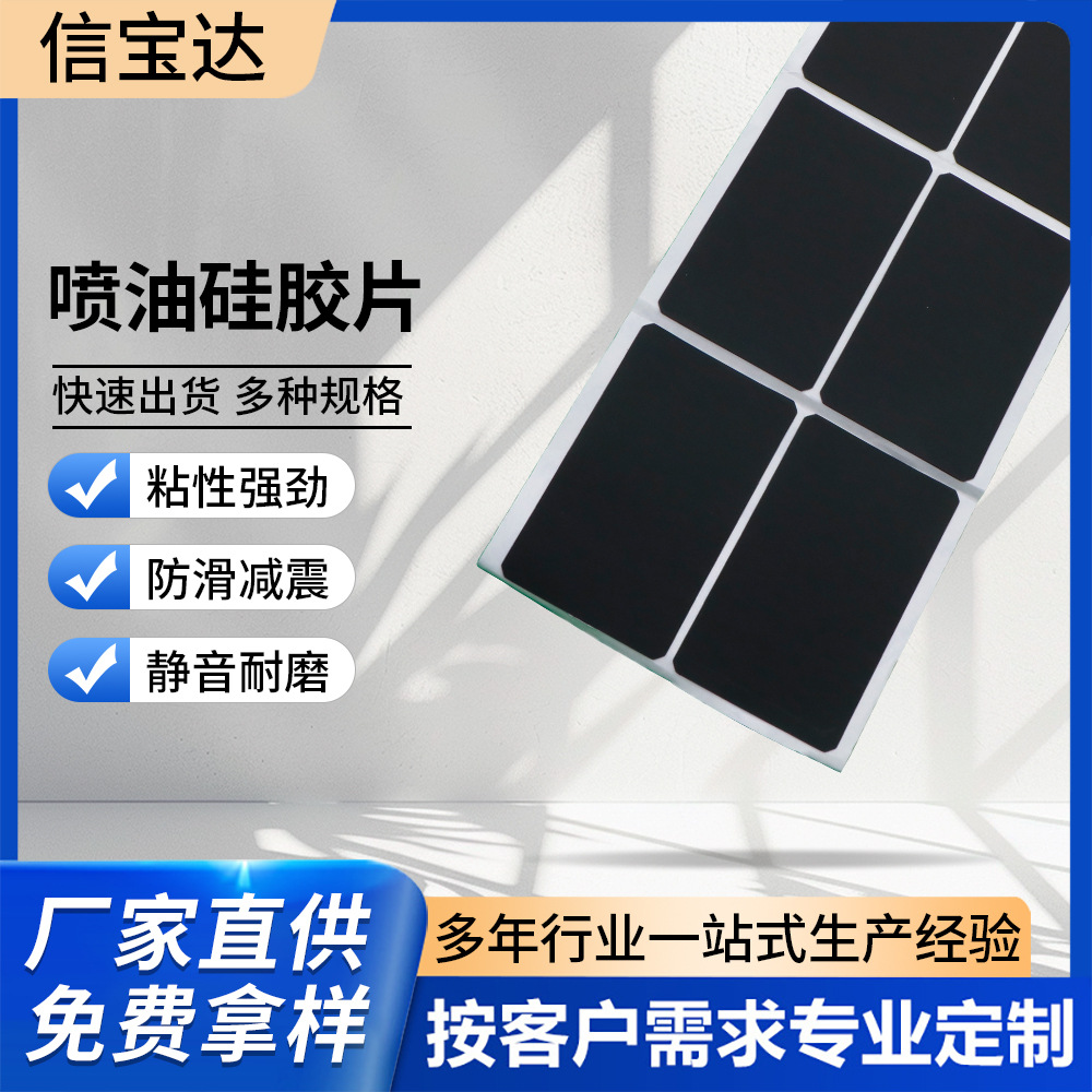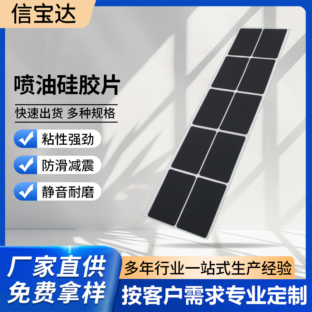 供应硅胶脚垫黑色喷油硅胶片自粘减震橡胶垫片模切胶片防滑背胶