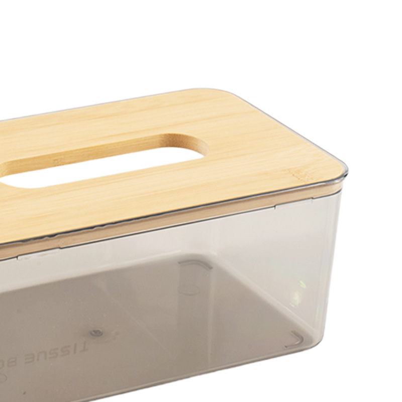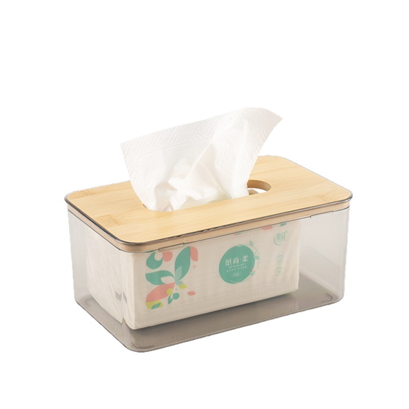 竹盖塑料纸巾盒客厅餐桌茶几抽纸盒长方形透明竹盖收纳纸巾盒定制