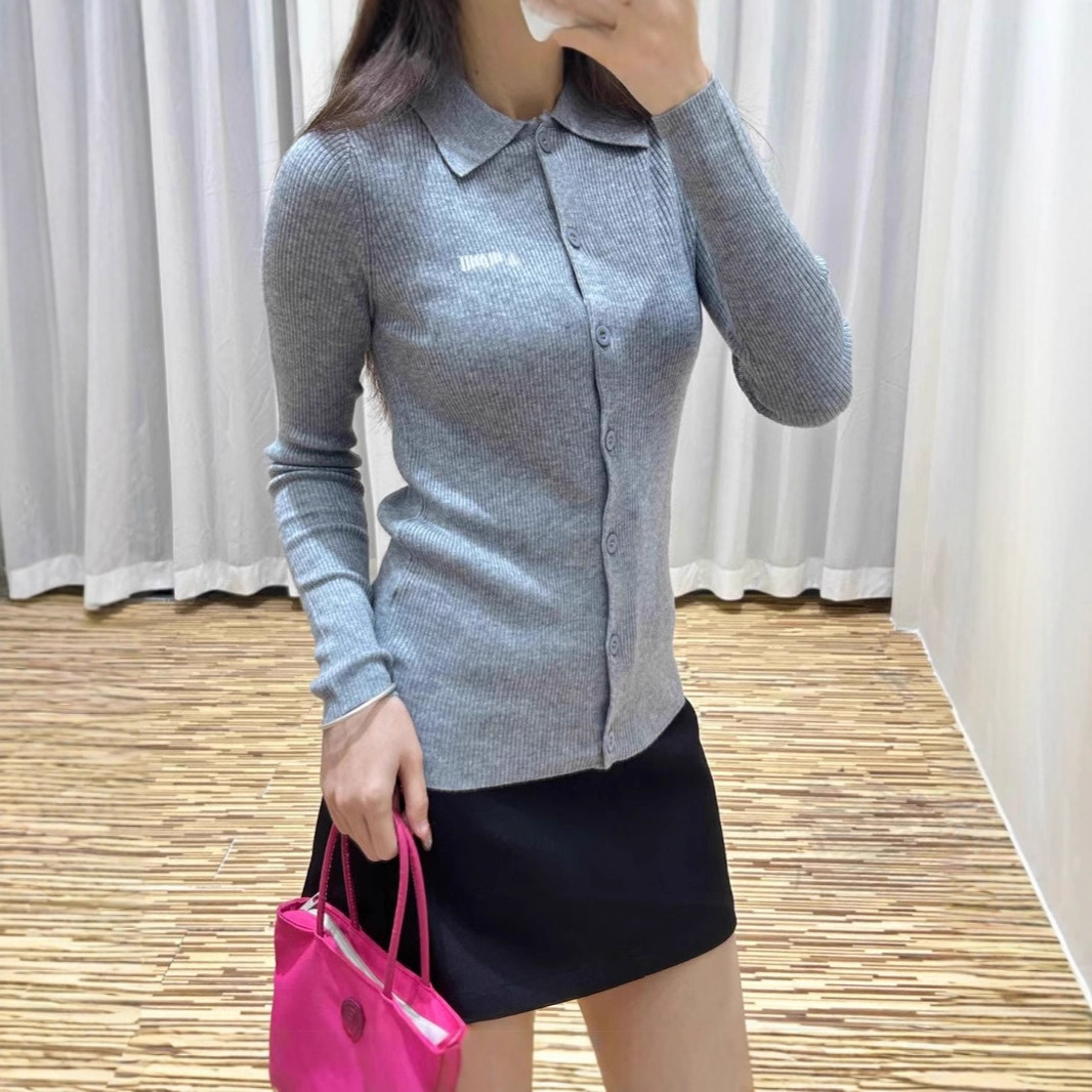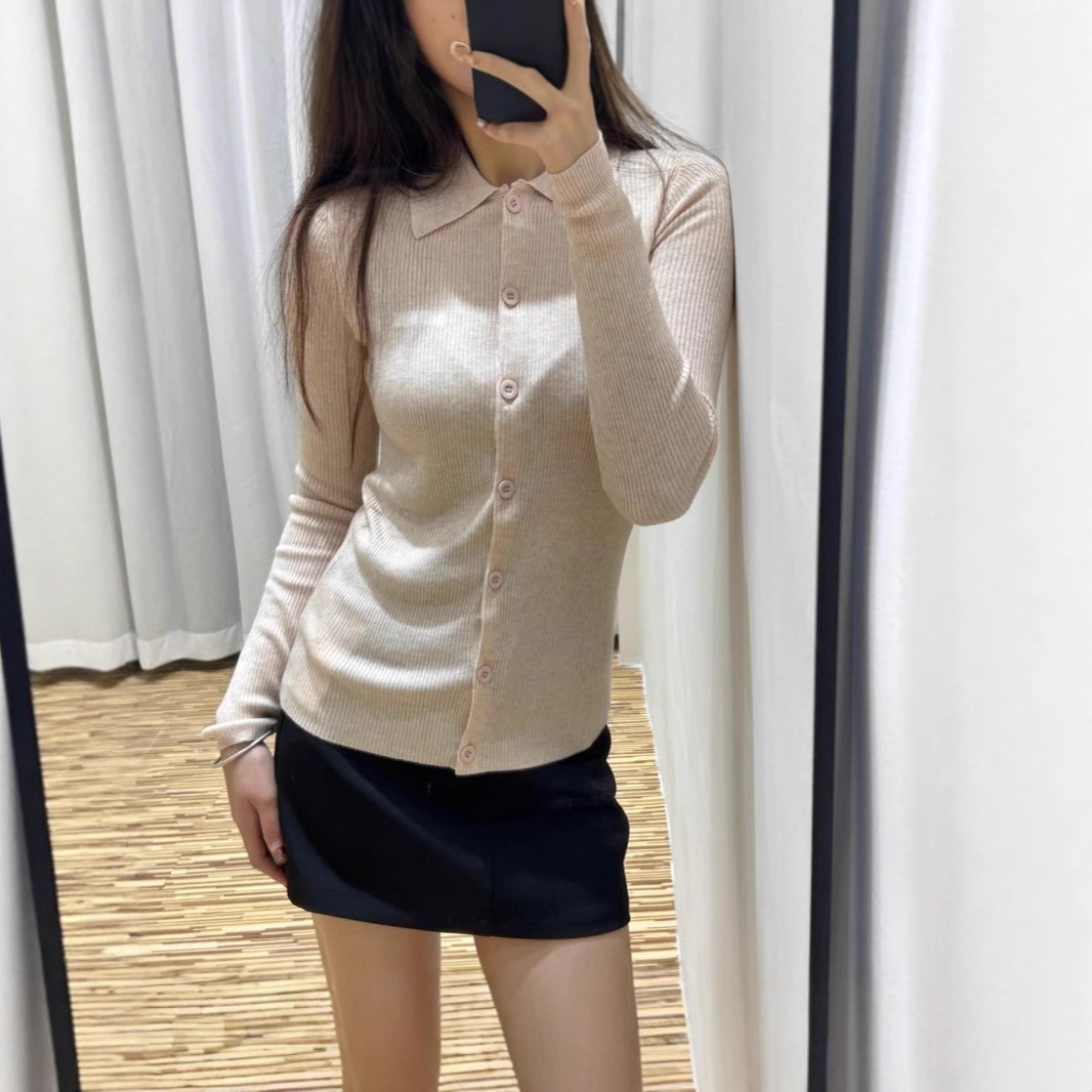 25新款 POLO领纽扣羊毛针织衫修身长袖打底针织衫女翻领开衫上衣