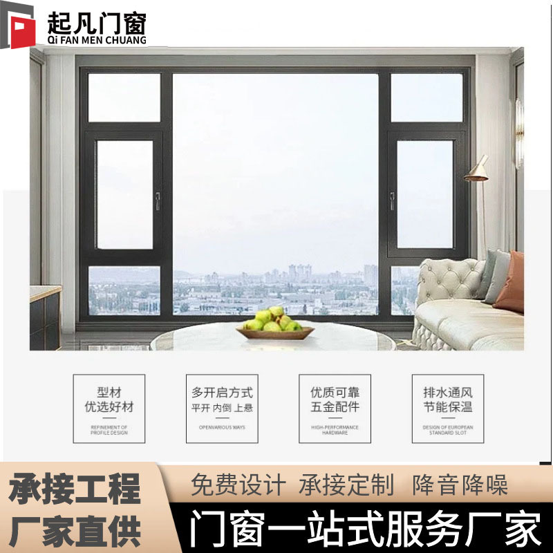断桥铝门窗封阳台系统铝合金断桥窗平开窗落地推拉静音玻璃窗户