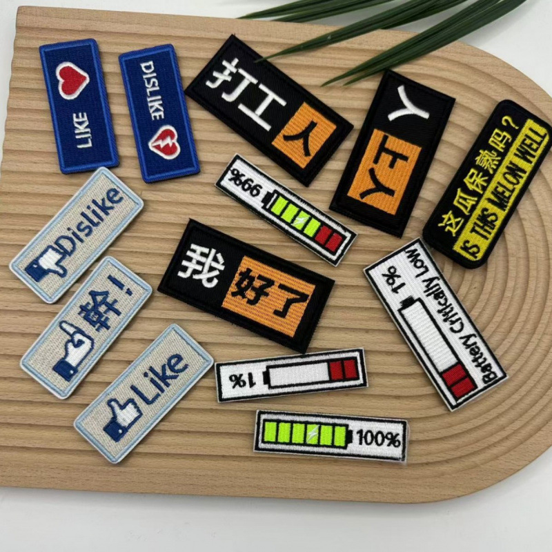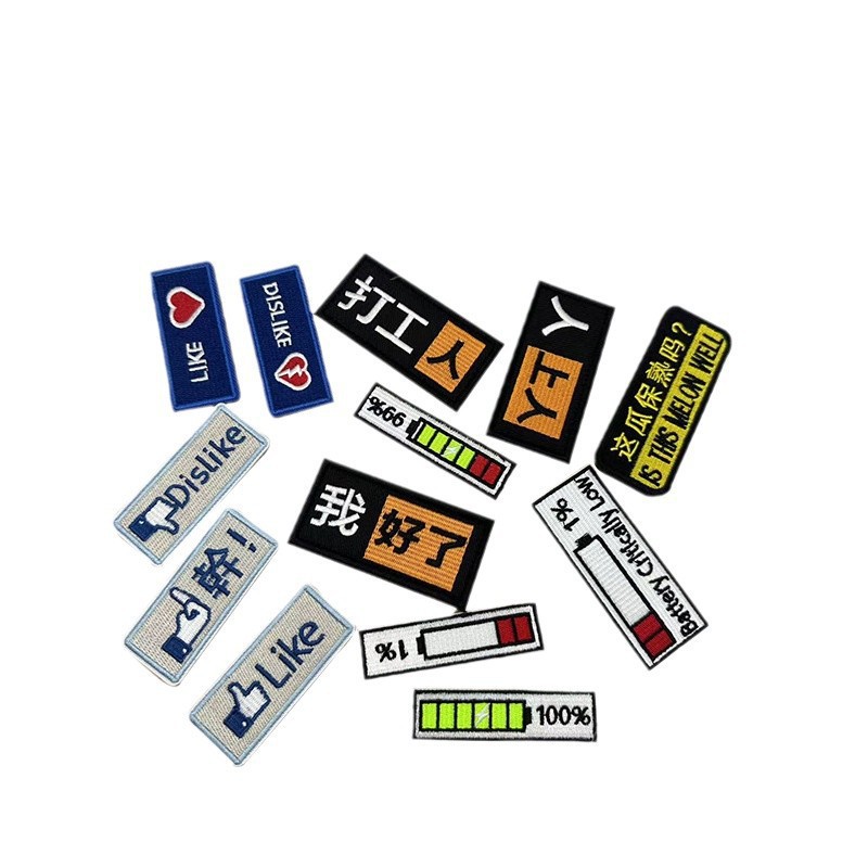 长条形刺绣魔术贴章个性徽章DIY缝纫英文补丁布贴户外包
