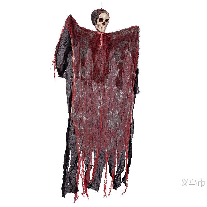 万圣节挂鬼吊饰染血恐怖骷髅头布置装饰道具血色纱布场景门廊露台