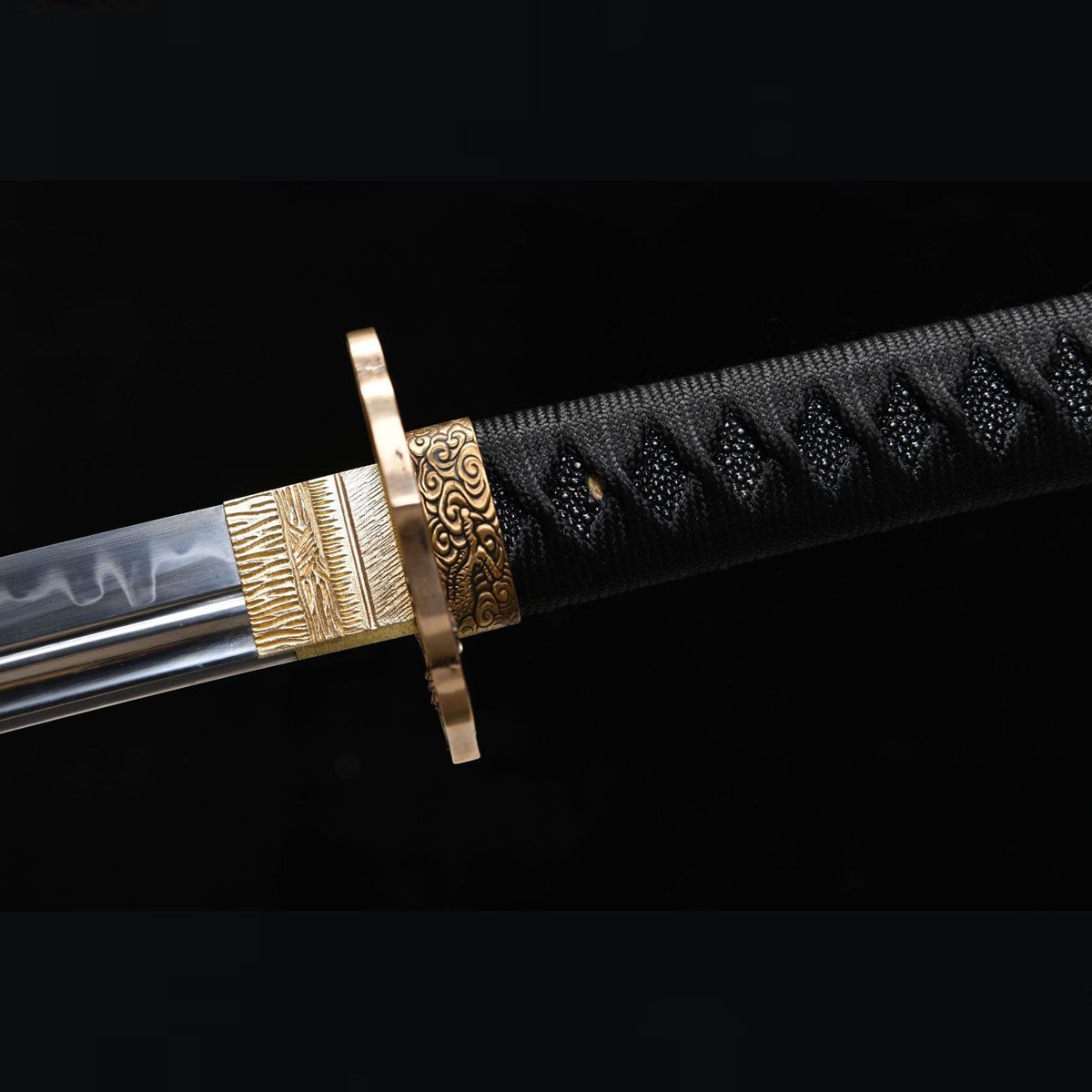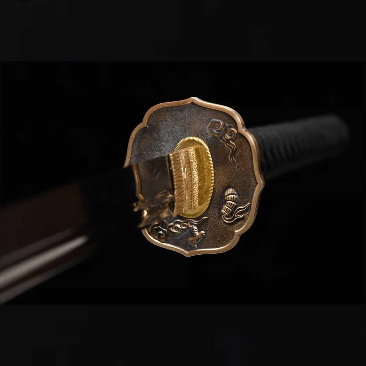 龙泉刀剑加长款纯铜装T10钢烧刃薙首造日式打刀手工锻打防身未开