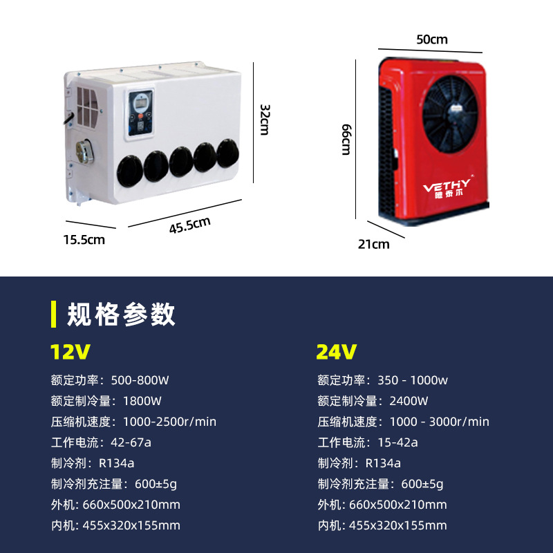 外贸批发24V冷暖驻车空调大货车房车专用车载空调一体机智能变频