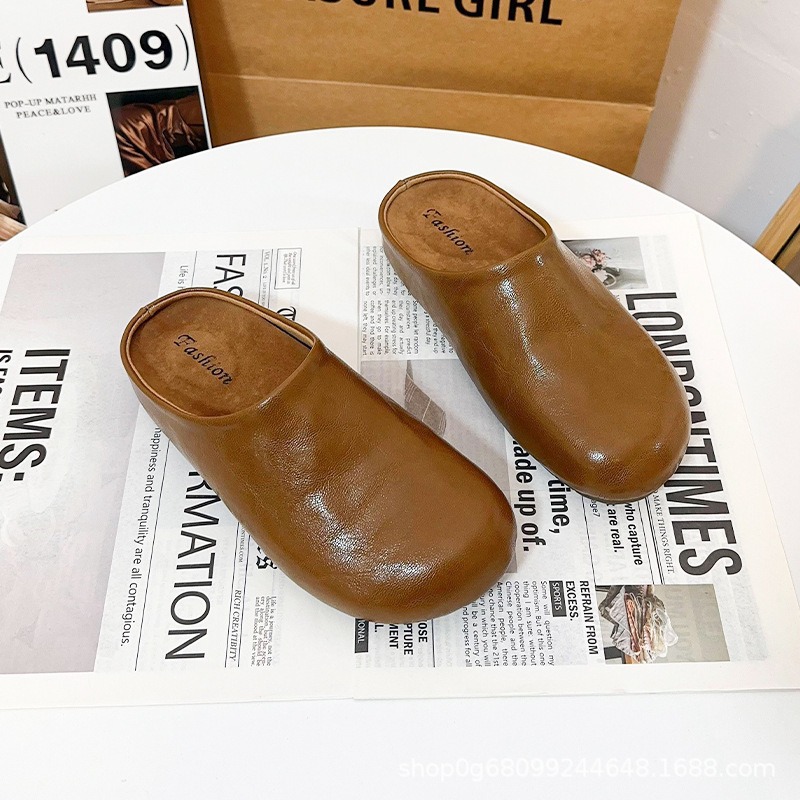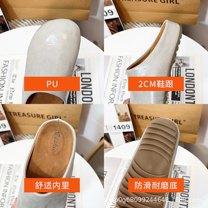 跨境法式厚底勃肯百搭包头半拖鞋女鞋子2025新款春夏复古小众懒人