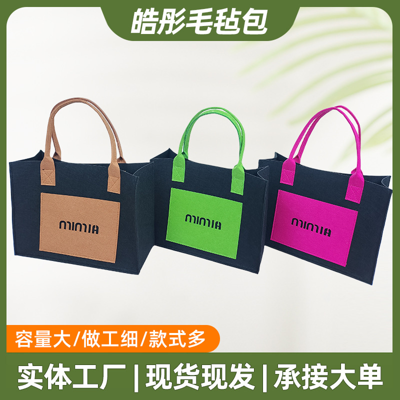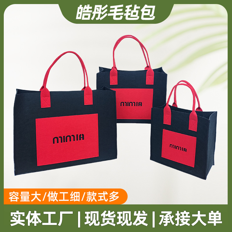批发毛毡手提礼品包大容量单肩包2025时尚加厚百搭手提礼品女包