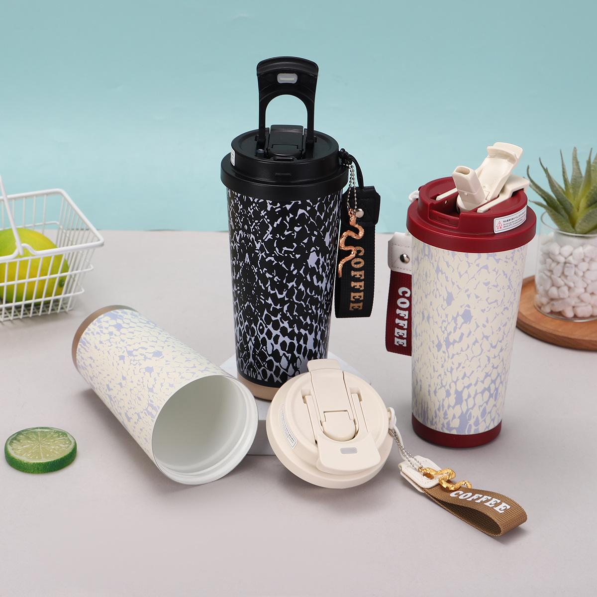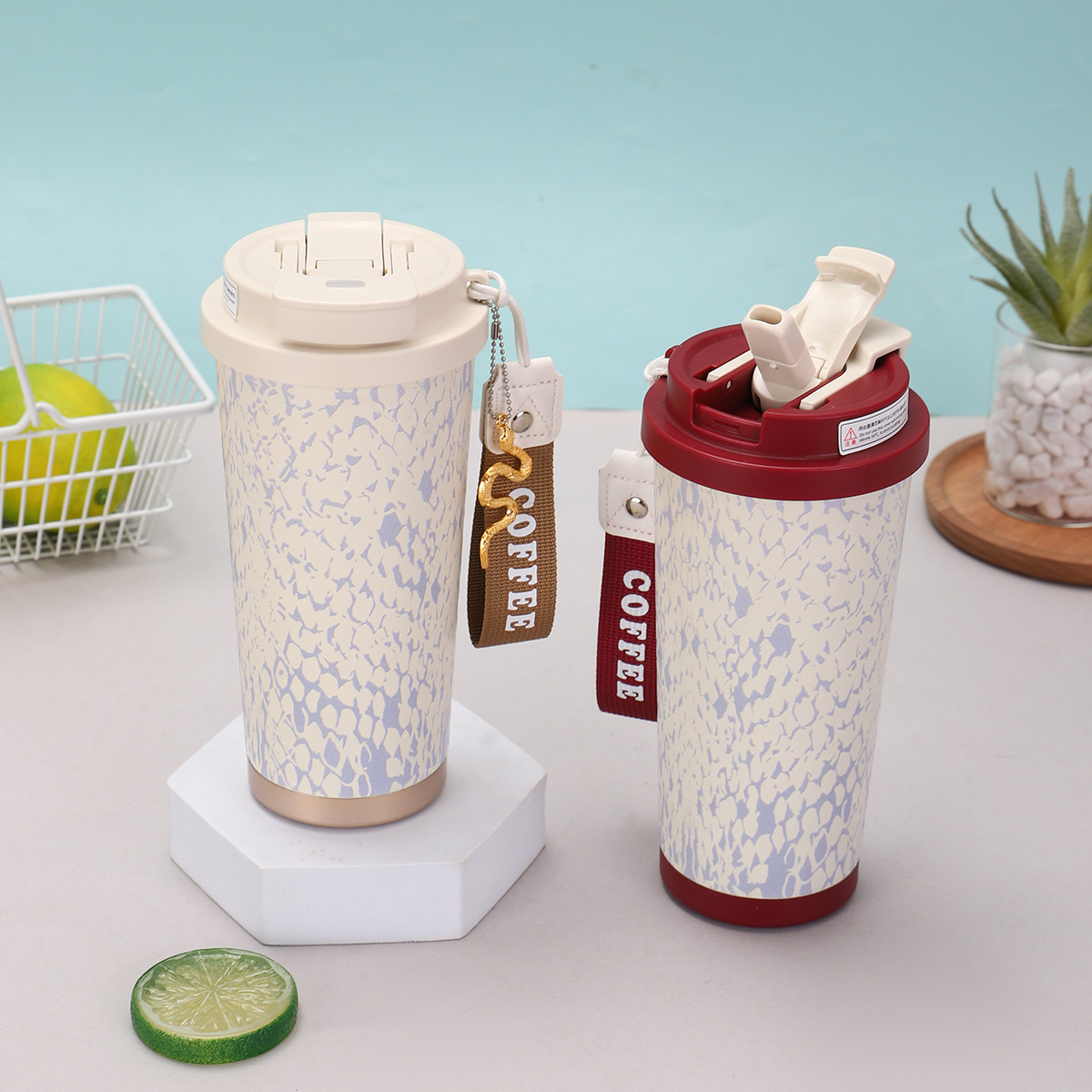蛇年新款316不锈钢双饮保温杯高颜值灵蛇挂件铃兰杯带提绳咖啡杯