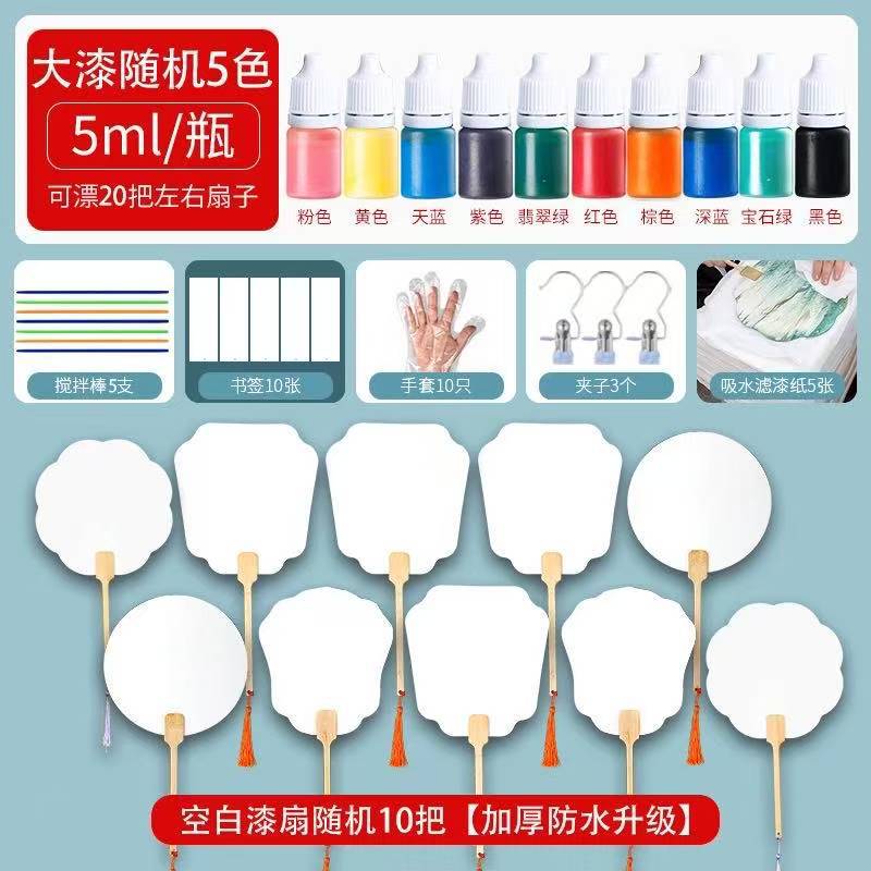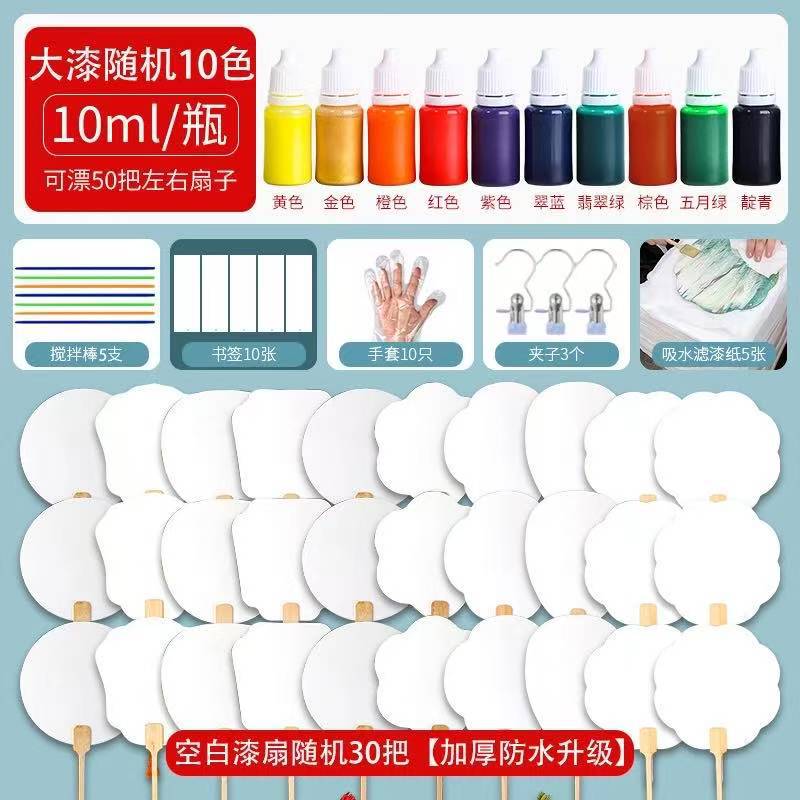 | 规格 | 【27件】随机字画扇10把+7色漆+制作材料 | 规格 | 【40件】随机字画扇30把+10色漆+制作材料 |
