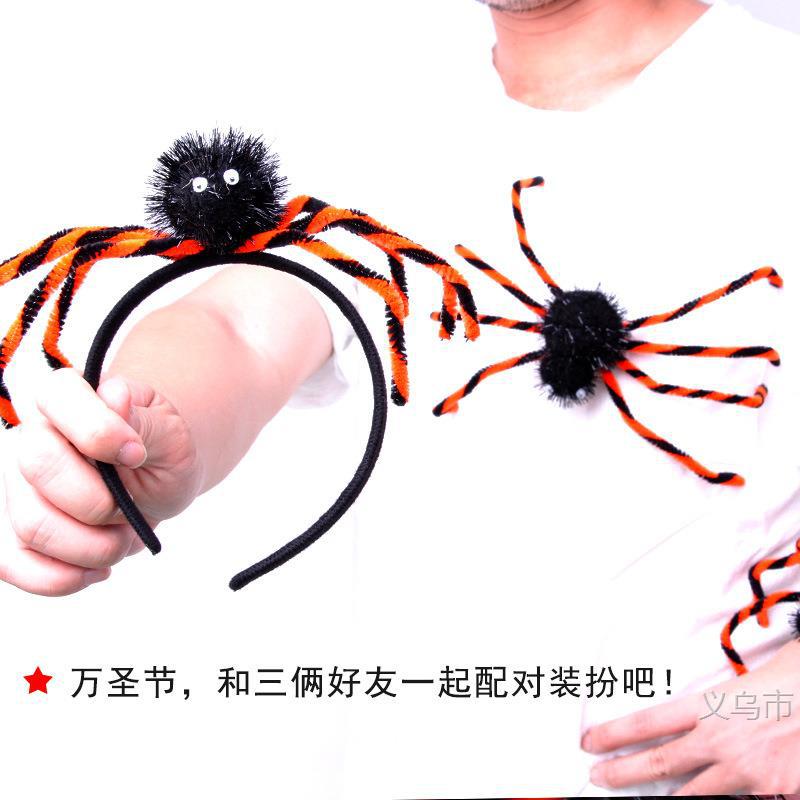 万圣节装饰品 拍拍圈 啪啪圈头扣胸针整蛊装扮吓人头箍发箍黑蜘蛛