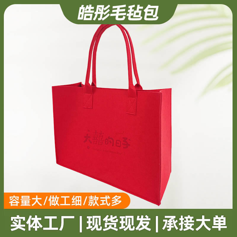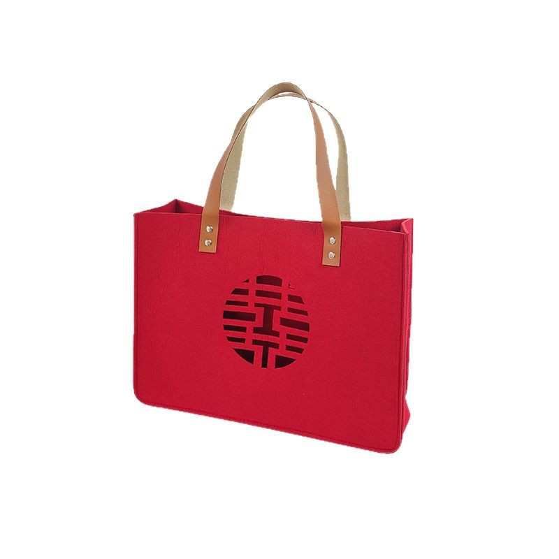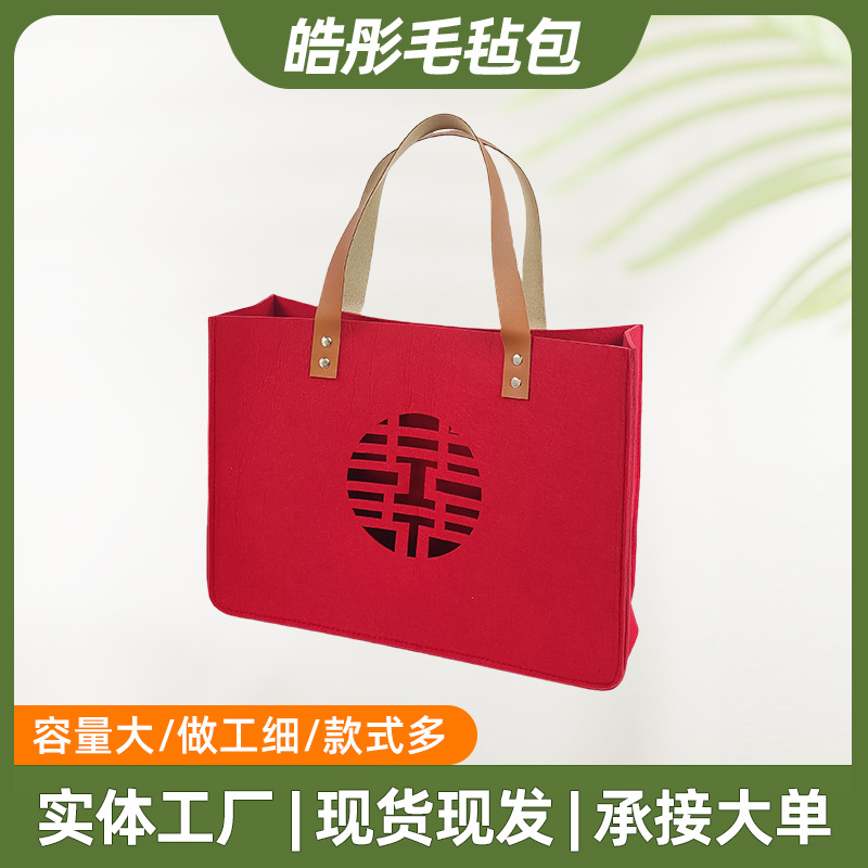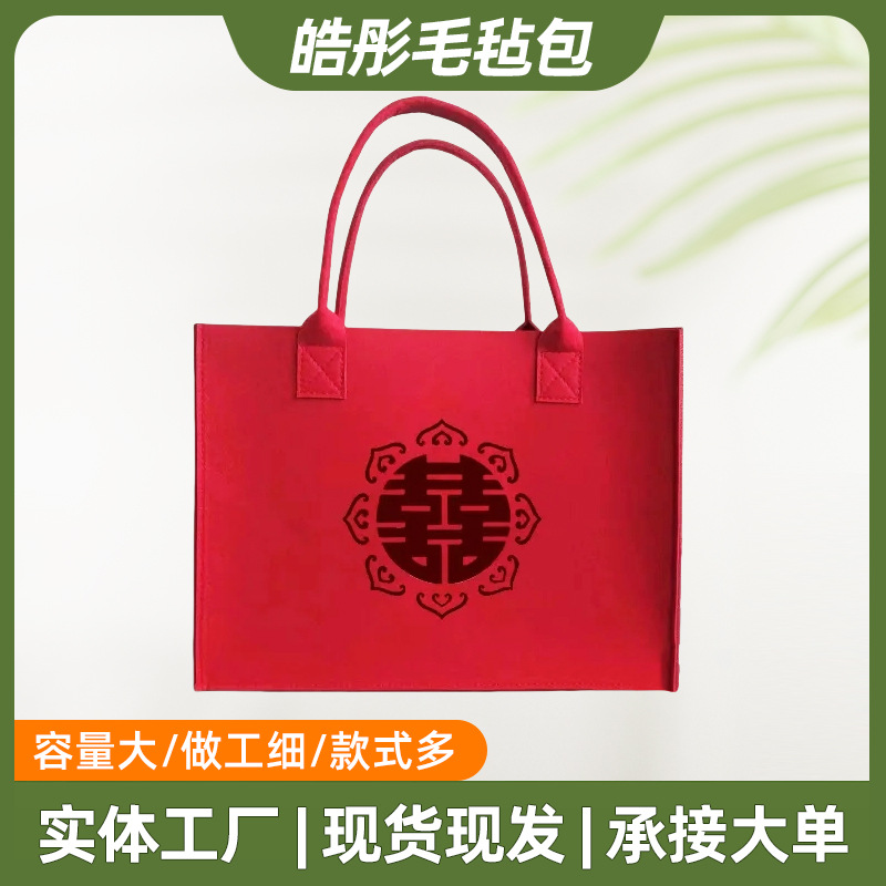 批发婚礼毛毡包结婚装红包用喜字手提袋子伴手礼喜糖超大毛毡包