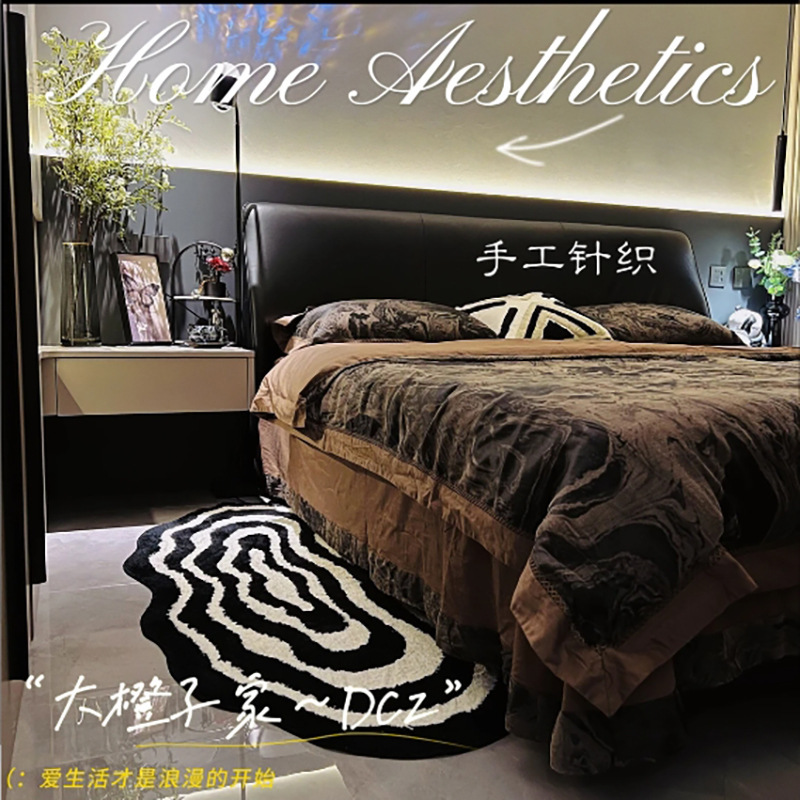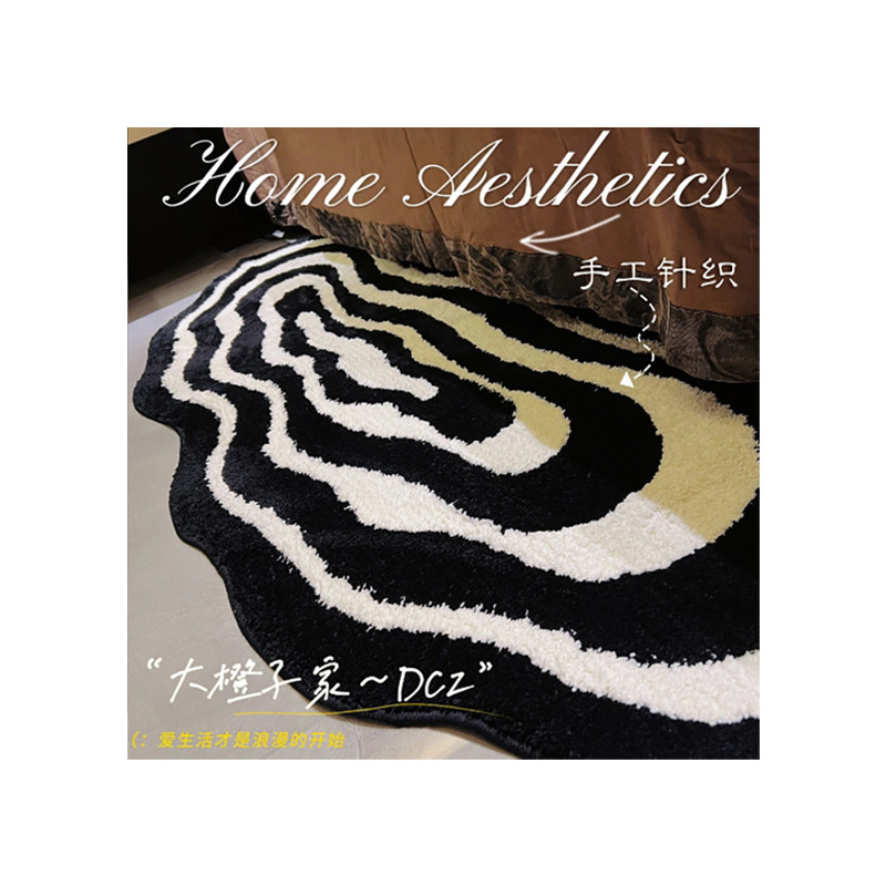 外贸出口防滑吸水地垫奶油风卧室床边植绒地毯不规则黑白脚垫