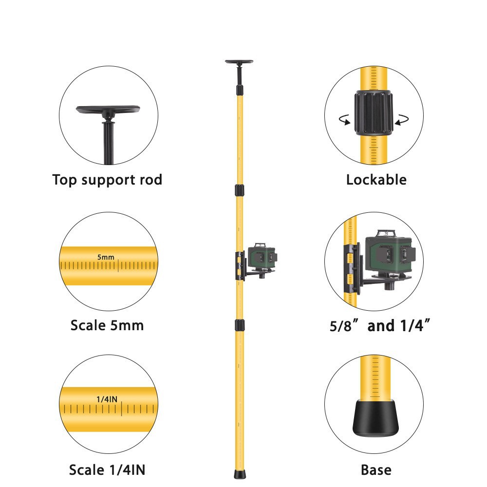 水平仪支撑杆铝合金支架可调升降三脚架1.2M/4米伸缩杆激光云台