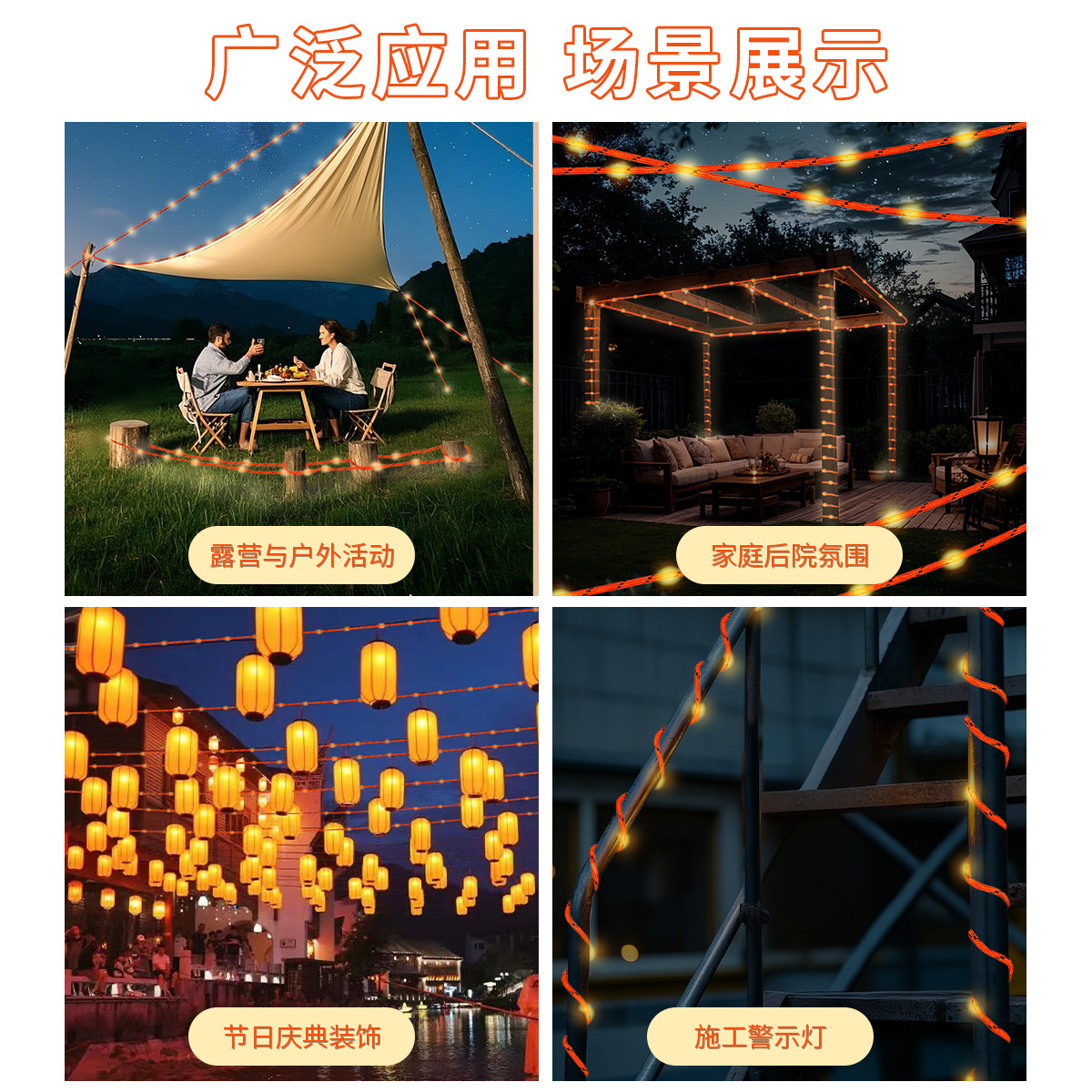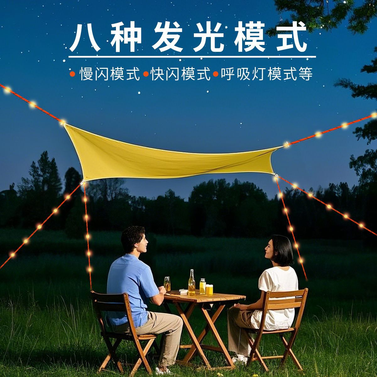 LED室外露营风绳灯3米5米10米天幕警示绳配件露营帐篷风绳发光灯