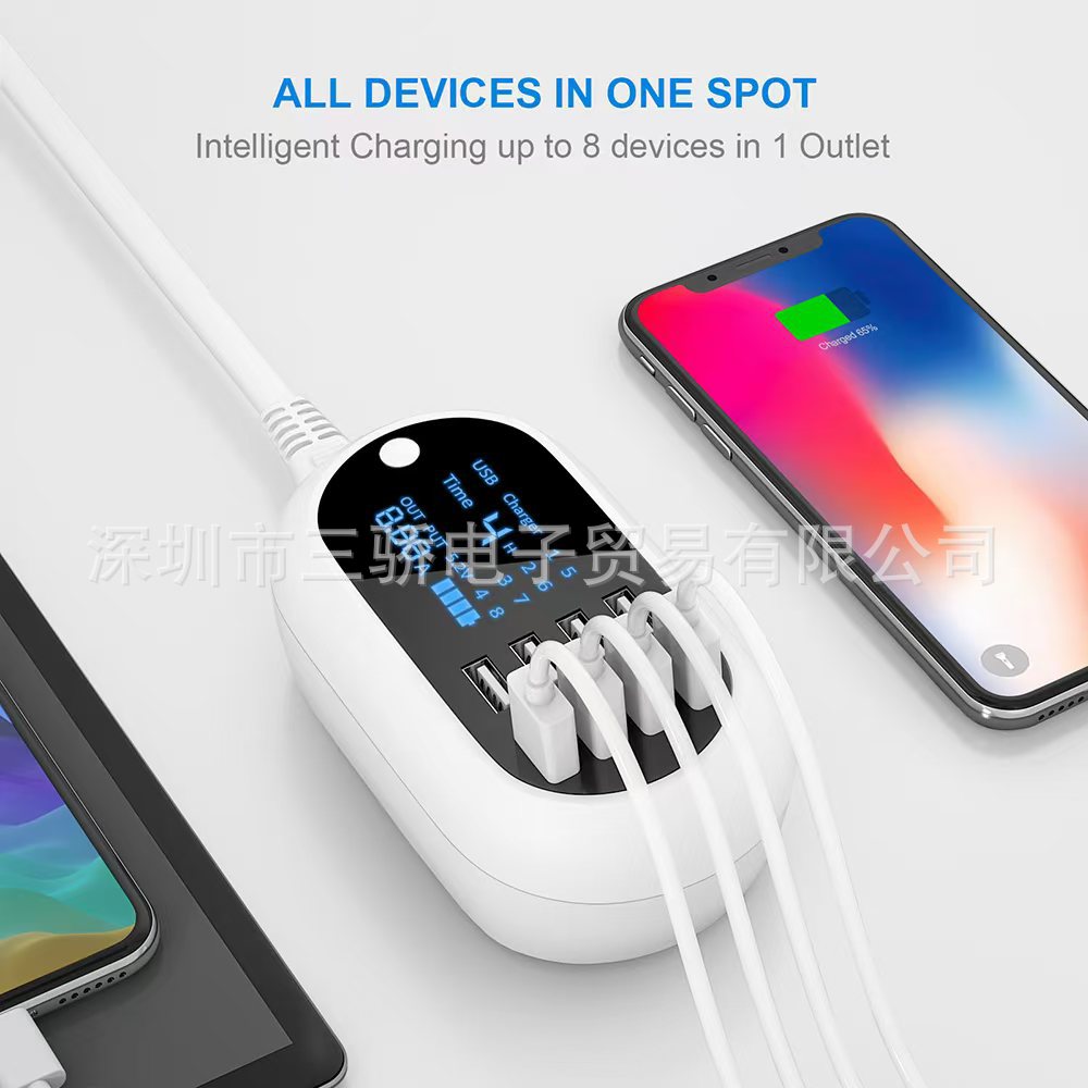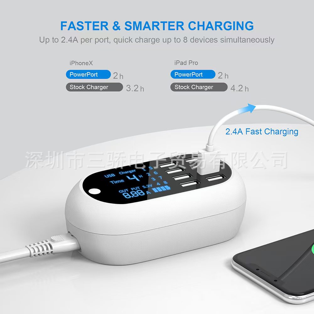 多口USB充电器8口充电器带显示充电器跨境闪充大功率智能快充电源