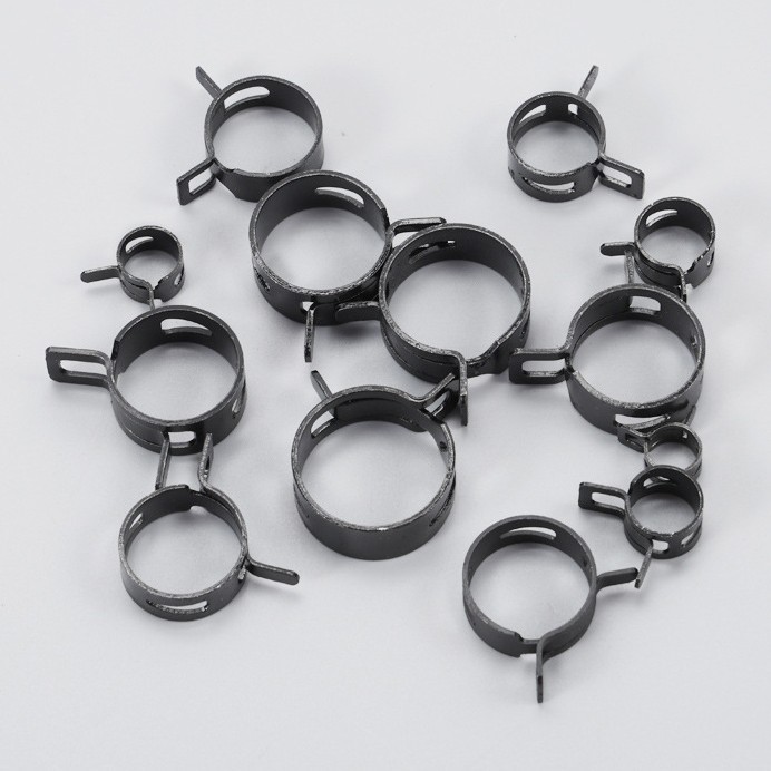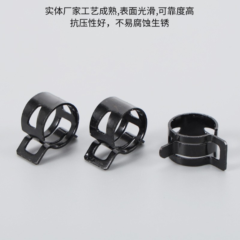 新款多规格金属材质弹性卡箍黑色喉箍不锈钢单耳卡扣紧固件抱箍
