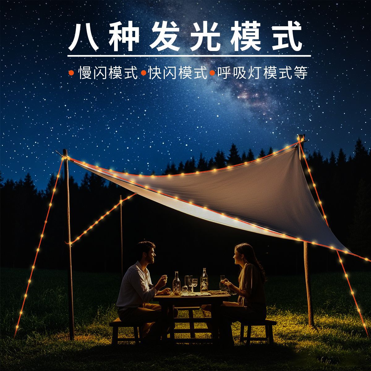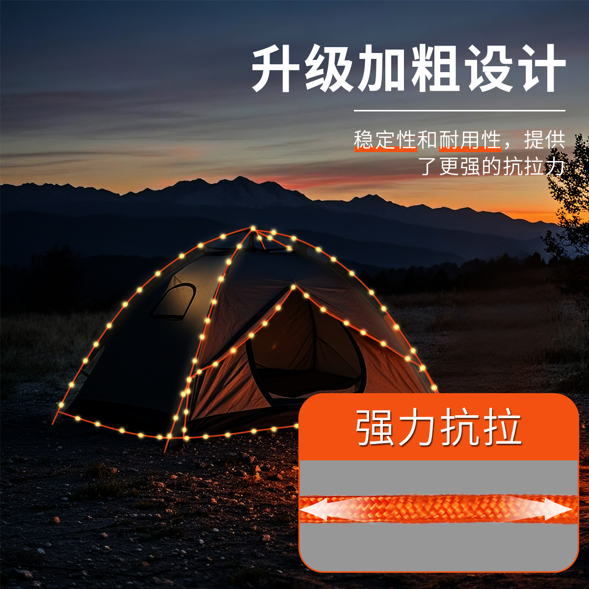 LED发光防风绳户外露营配件帐篷天幕警示发光绳野营发光风绳灯