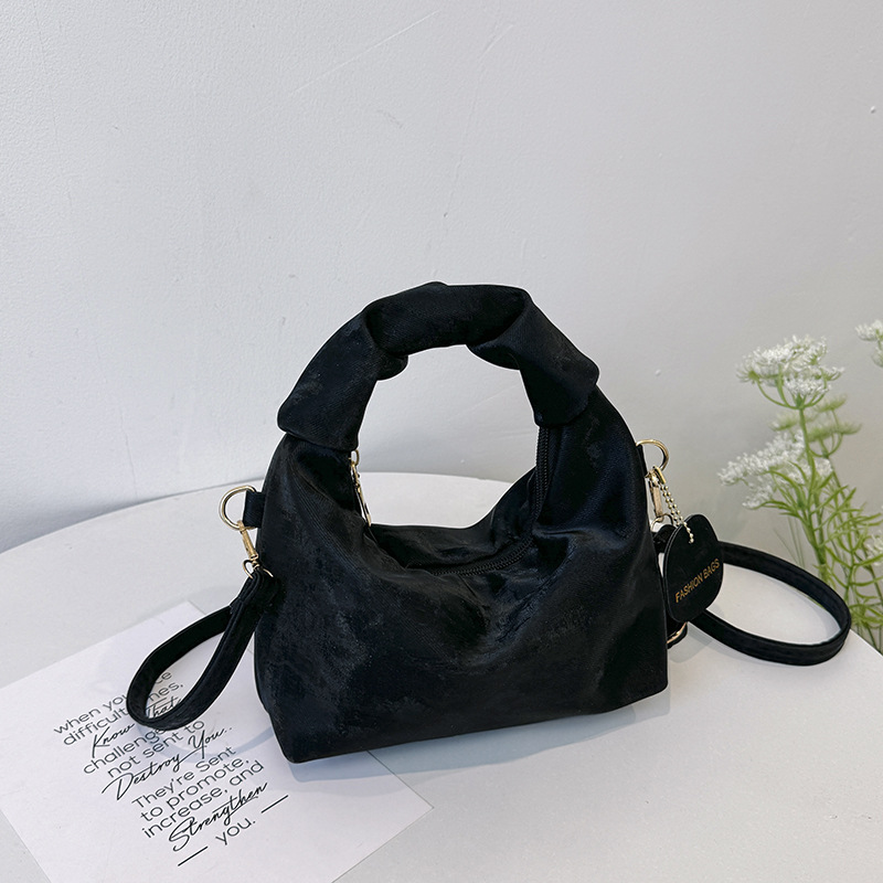 2025新款女士手机零钱包潮流时尚少女单肩包简约手提褶皱包斜挎包