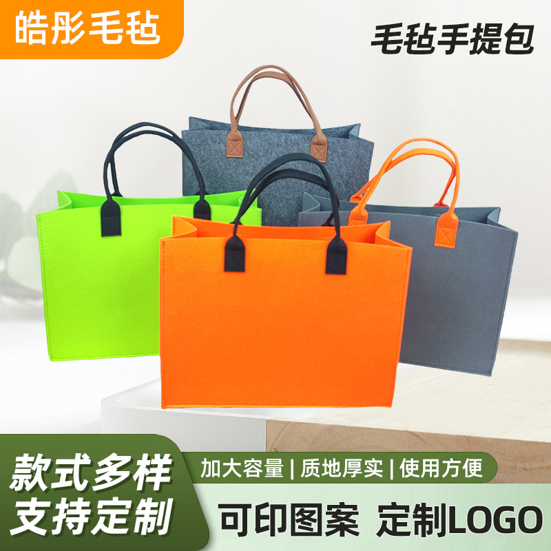 定制新款logo毛毡袋企业包手提包大容量托特包礼品旅行环保购物袋
