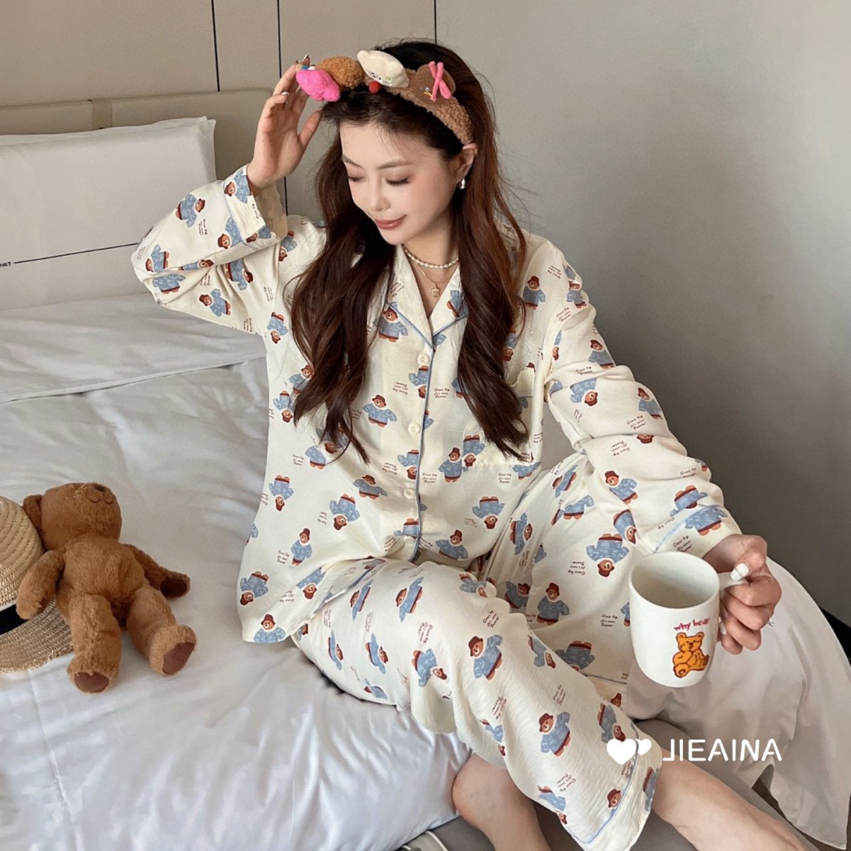 趣味卡通轻纱睡衣套装W945#春秋韩版可爱甜美长袖长裤开衫家居服