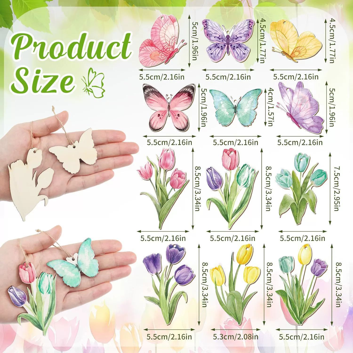 春天花朵装饰树爆款木质装饰农舍春天郁金香悬挂标志装饰假日春季